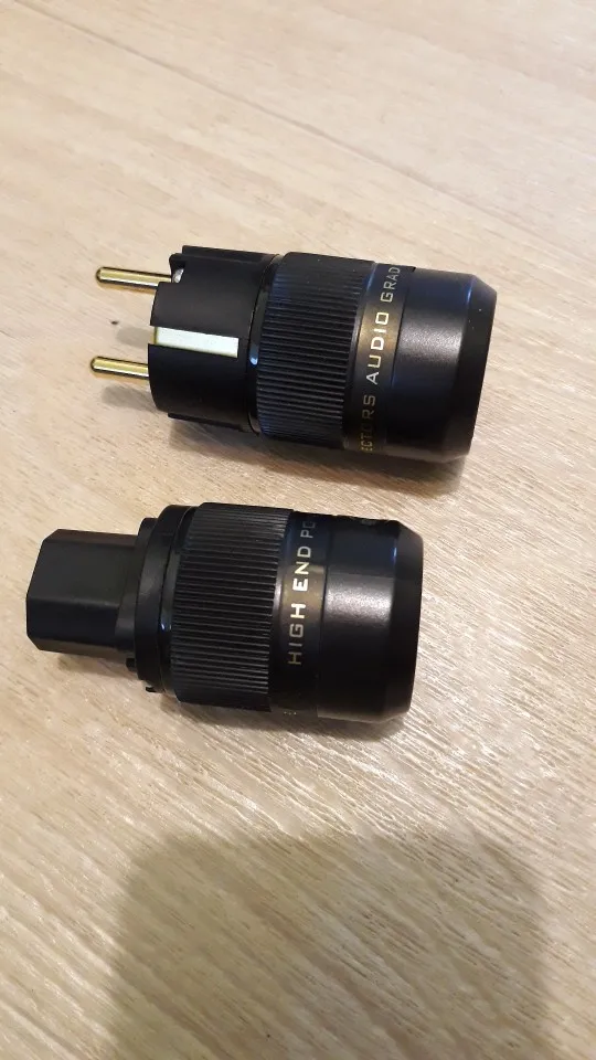 Une paire haut de gamme 24K plaqué or Schuko prise de courant alternatif + connecteur d'alimentation IEC adaptateur d'alimentation audio connecteur