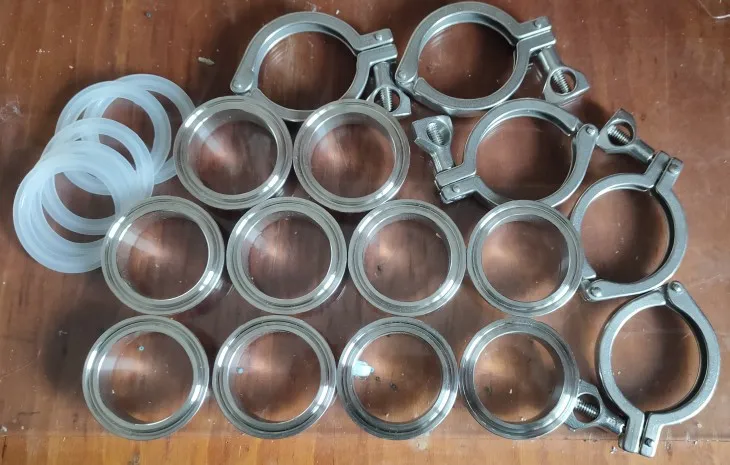 Union – virole sanitaire à trois pinces de soudure 51mm O/D, ensemble en acier inoxydable 304 + 3 pinces de 2 "+ joint en silicone pour production à domicile