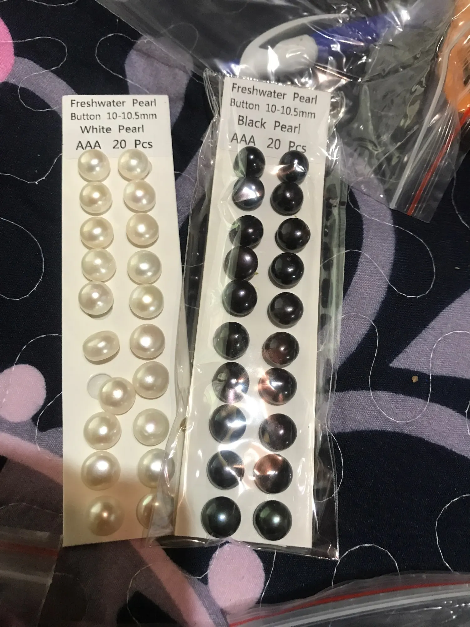 Cultured freshwater pearl AAA 8mm white pink purple button pearl