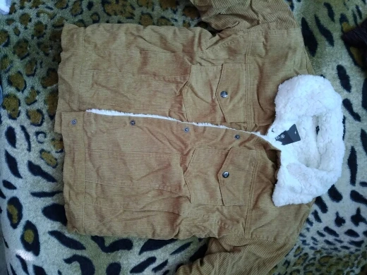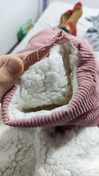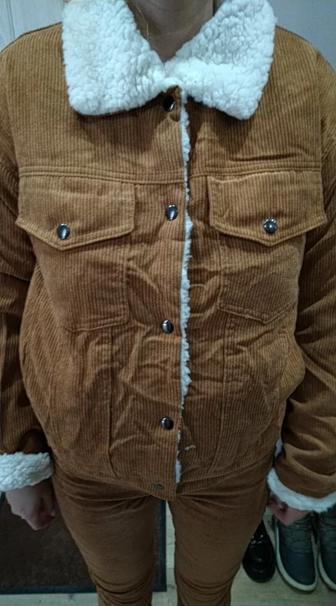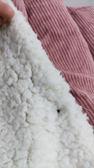 Veste comme décrite et sur photo. Intérieur rembourré blanc extérieur tissu type suédine ou velours doux. Prise en rose couleur identique à la photo, arriver en 15j.
