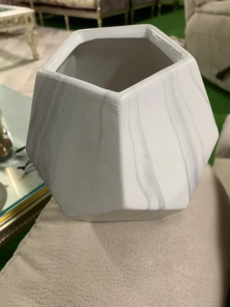 Vase géométrique moderne marbré blanc en céramique, 1 pièce, porte-fleur, support géométrique de table de bureau, décoration de bureau et maison, 10/13/17cm