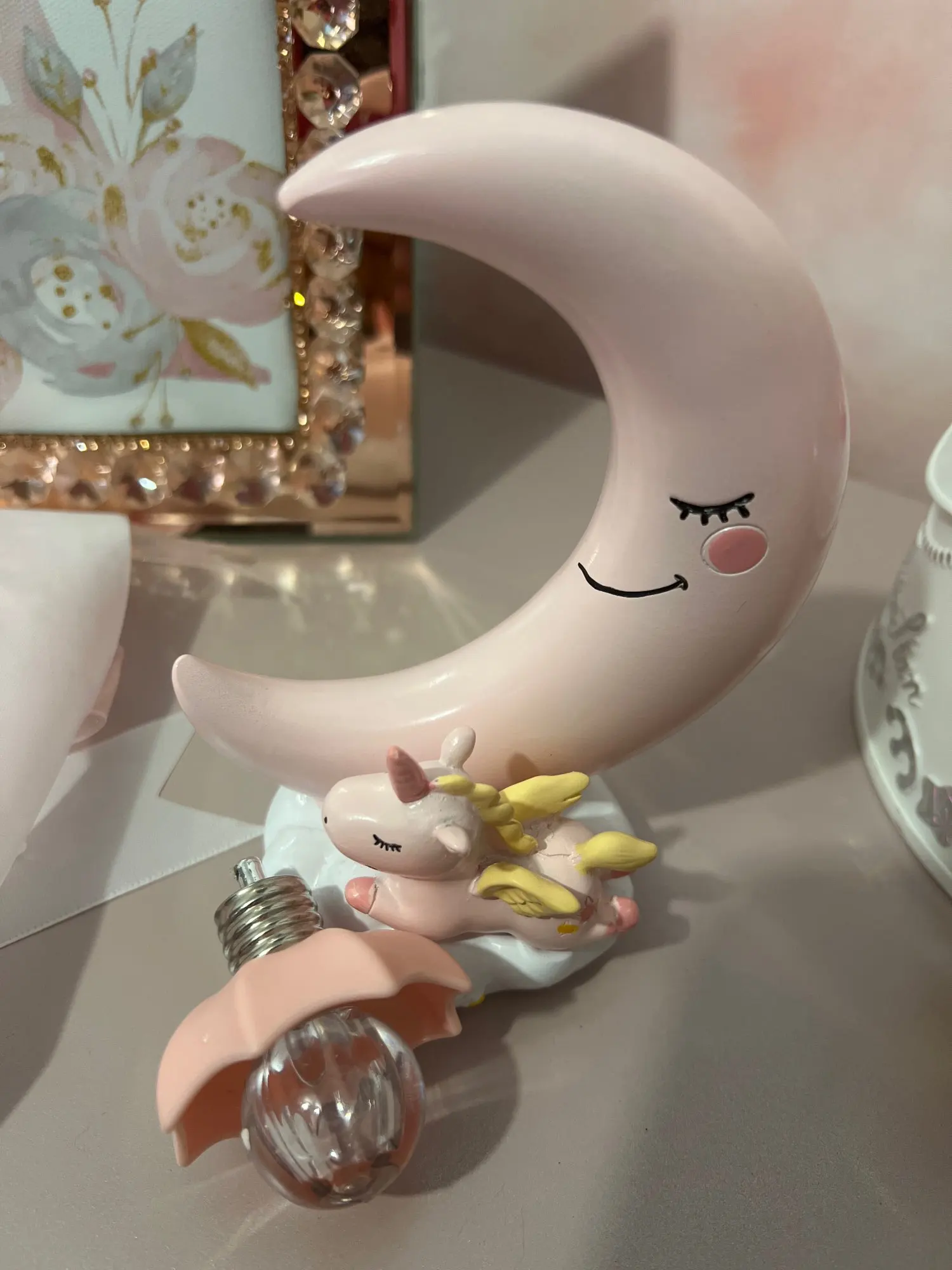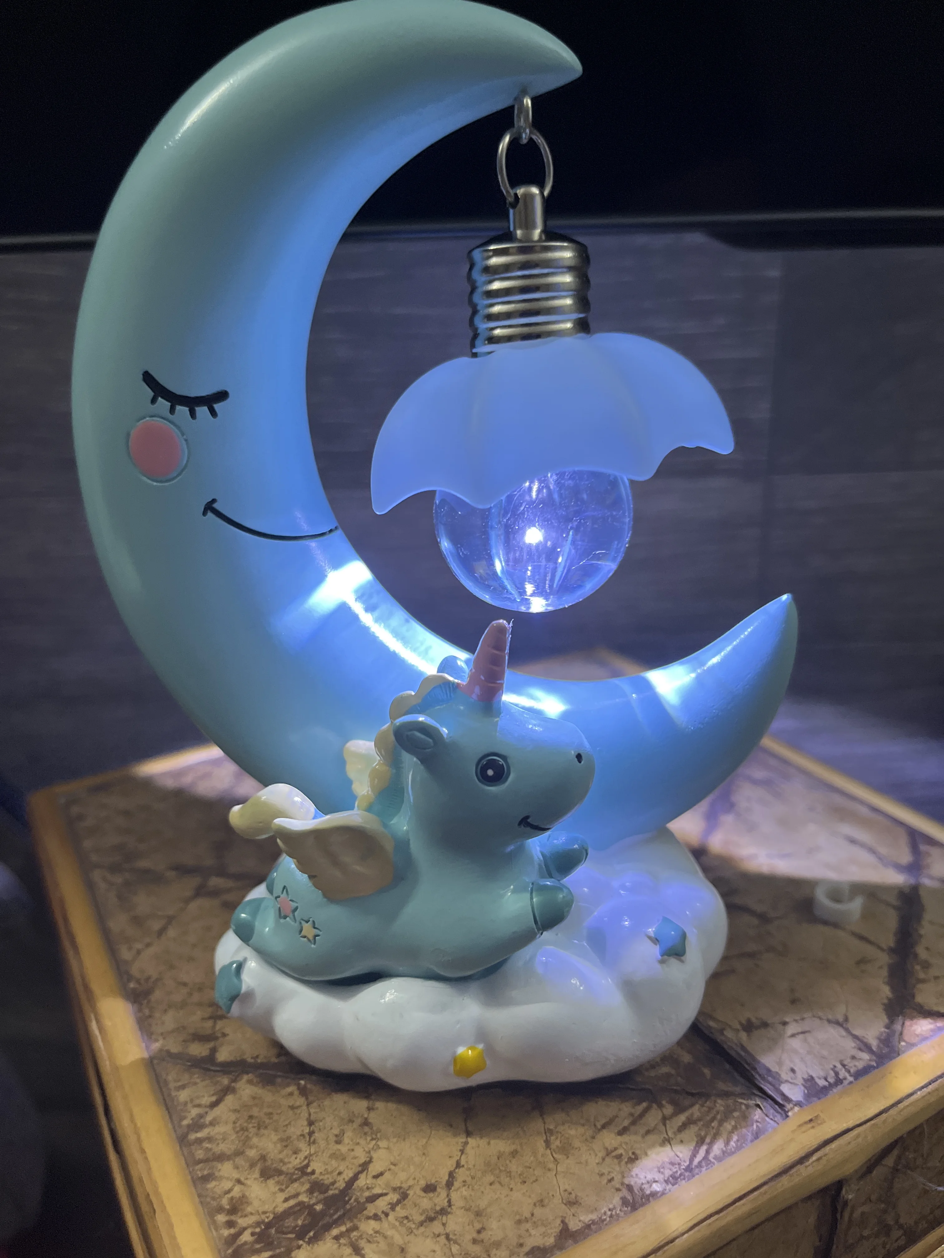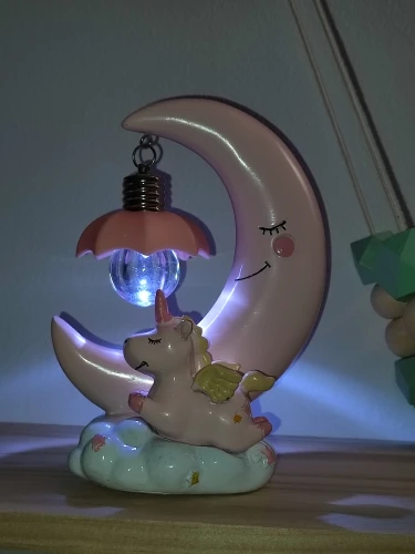 Veilleuse LED en résine, thème lune, licorne, dessin animé, luminaire décoratif, romantique, mignon, idéal pour une chambre d'enfant ou une fille