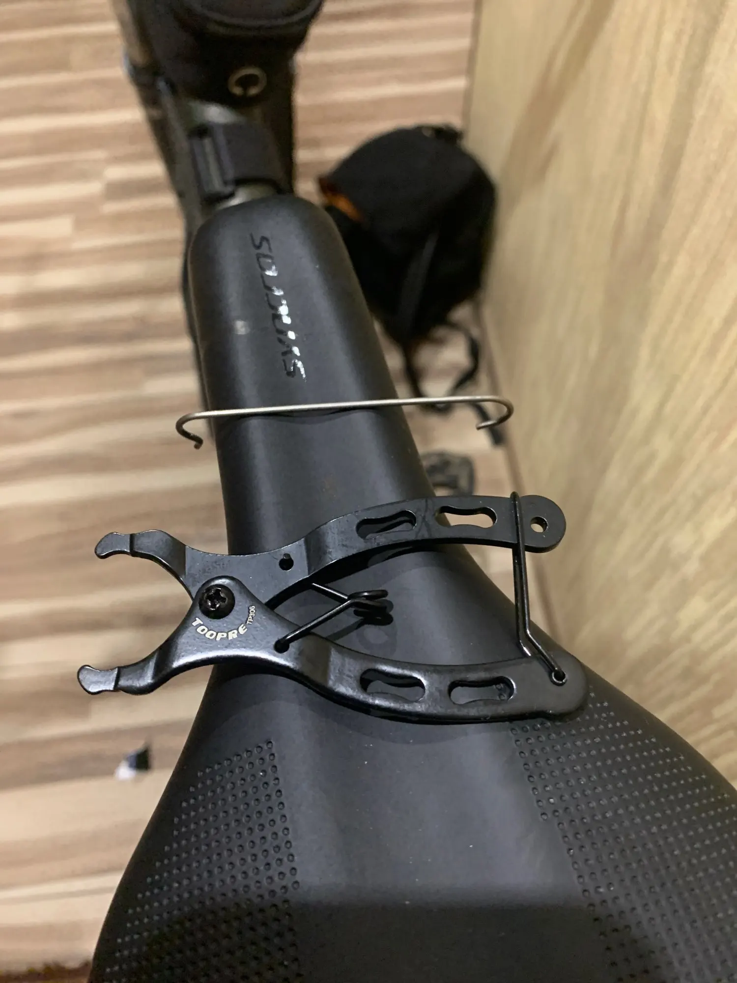 Attention la pince est petite mais cet inconvénient a l'avantage de pouvoir la mettre dans une petite sacoche sur le VTT