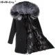 Véritable fourrure de lapin herbe doublée de chaud hiver veste femme véritable fourrure de raton laveur col Long parkas manteau