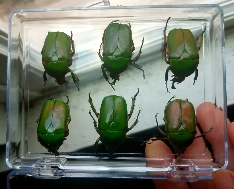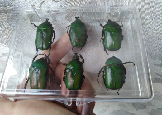 Très vite arriver et magnifique coléoptères juste à savoir c est collé dans la boîte