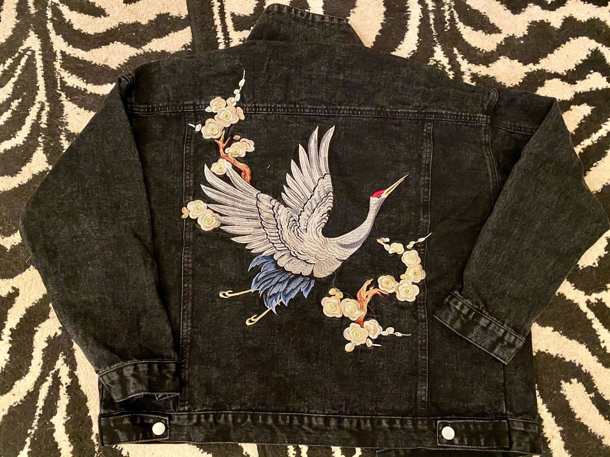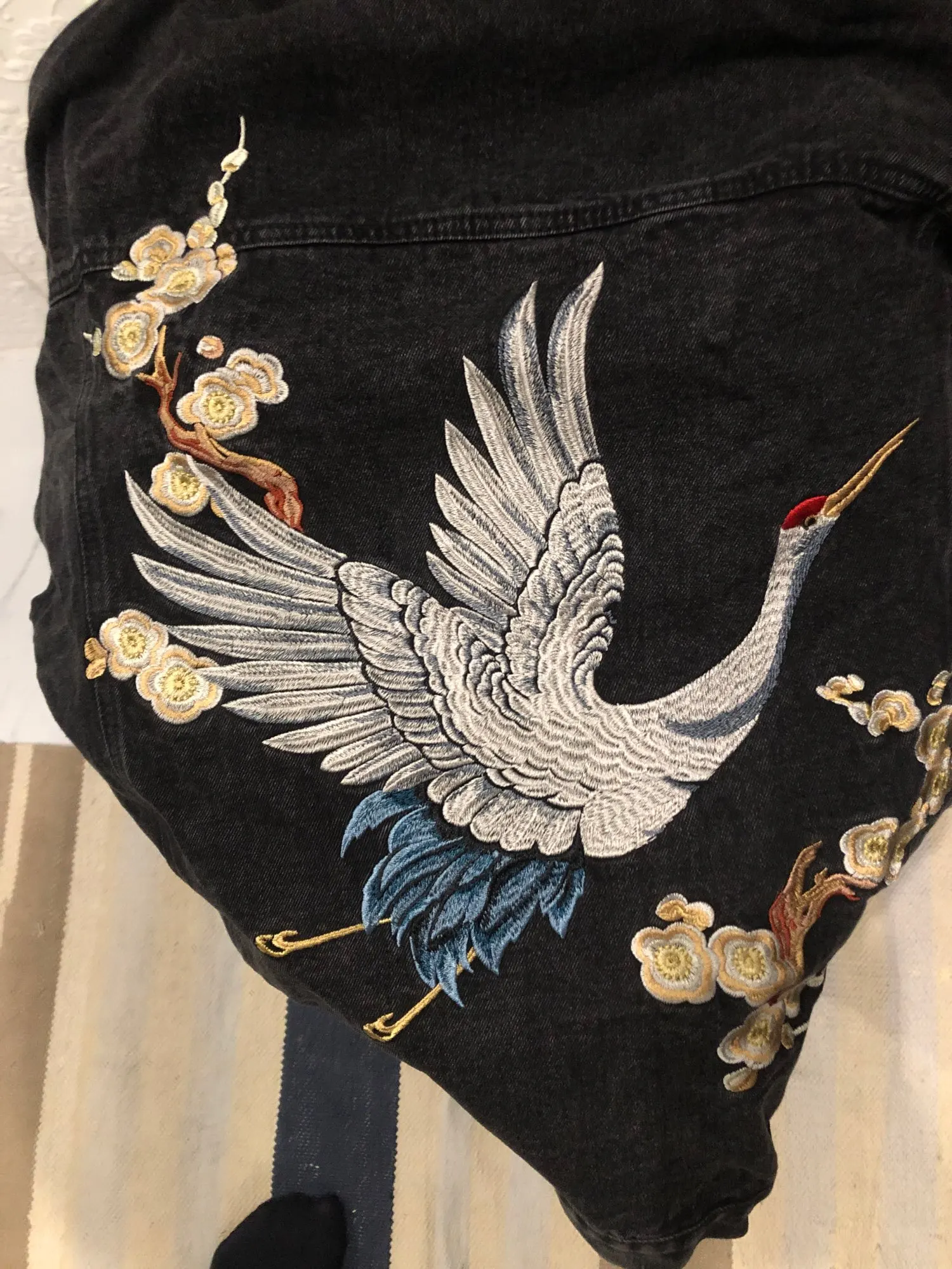 Veste en Denim pour femme, veste noire, coupe ample, joli petit ami, broderie lourde, petite grue, à la mode, automne 2022