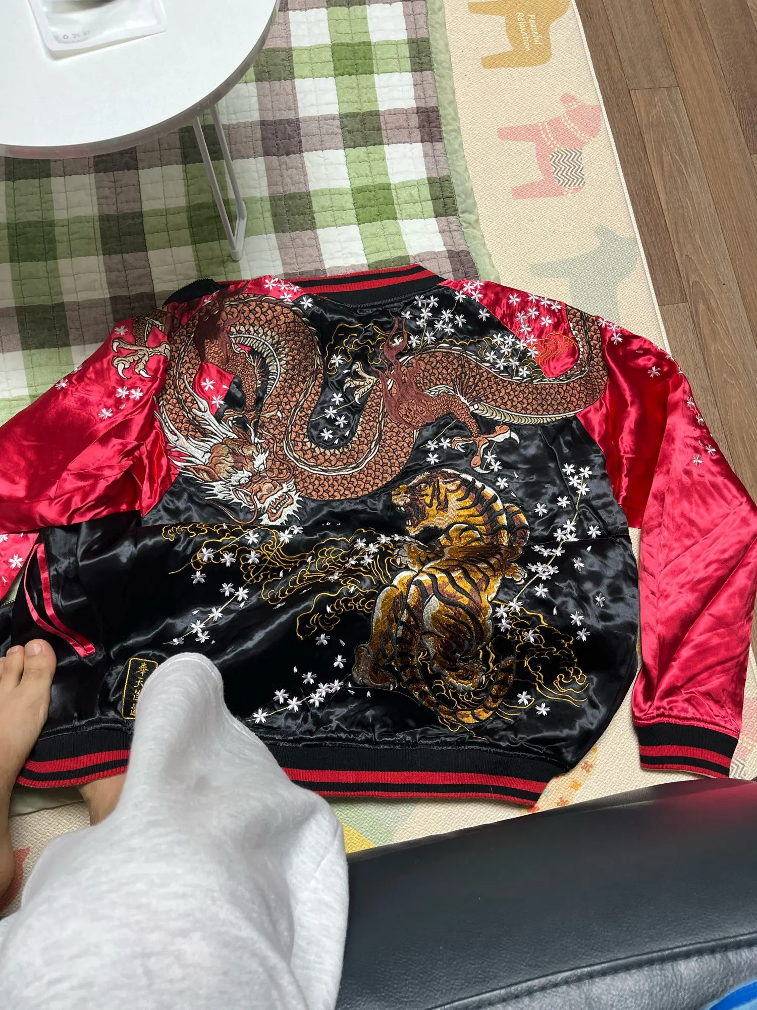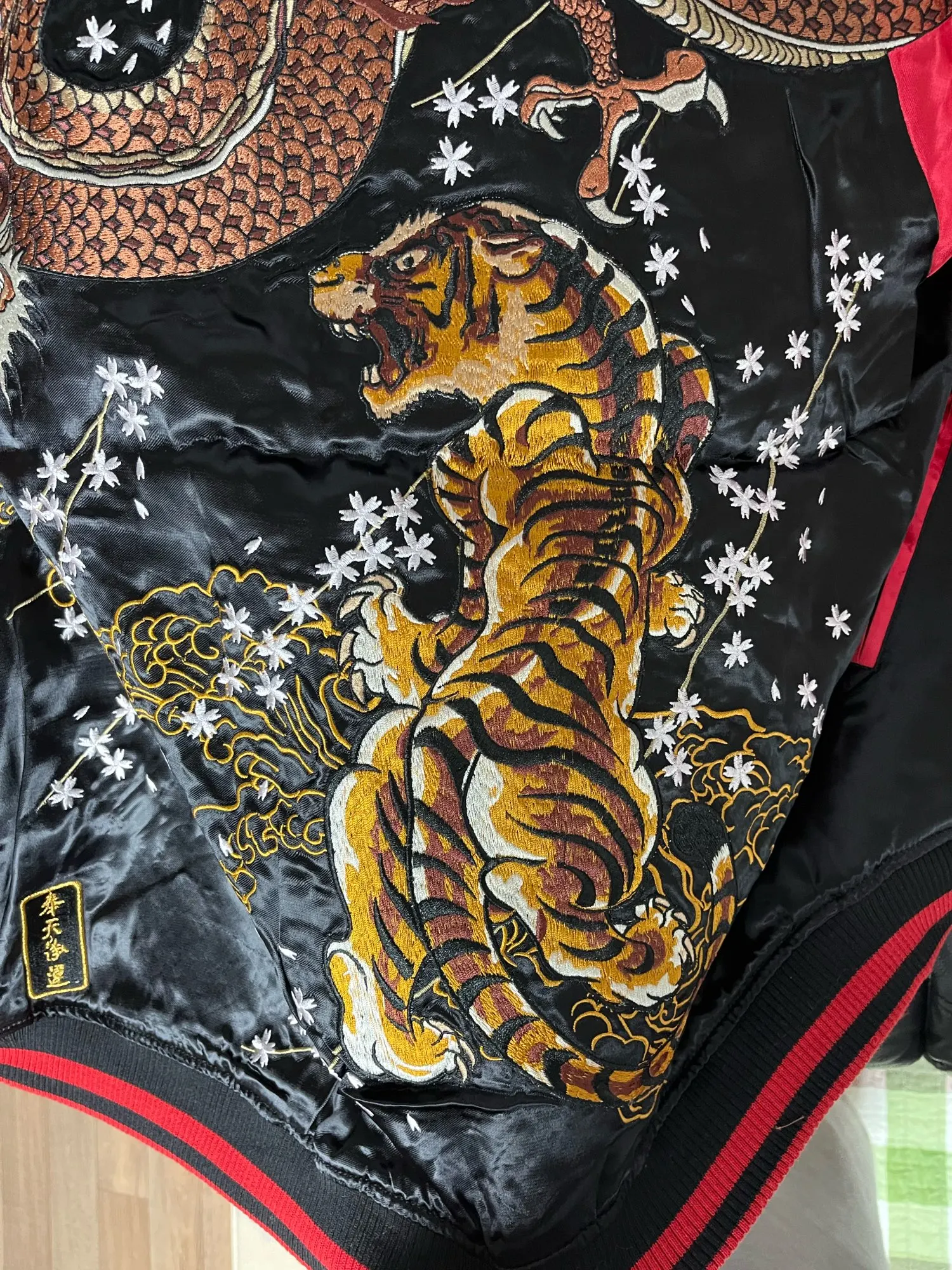 Veste réversible de haute qualité pour hommes, brodée Dragon Tiger, uniforme de Baseball, mode grande taille, manteaux L