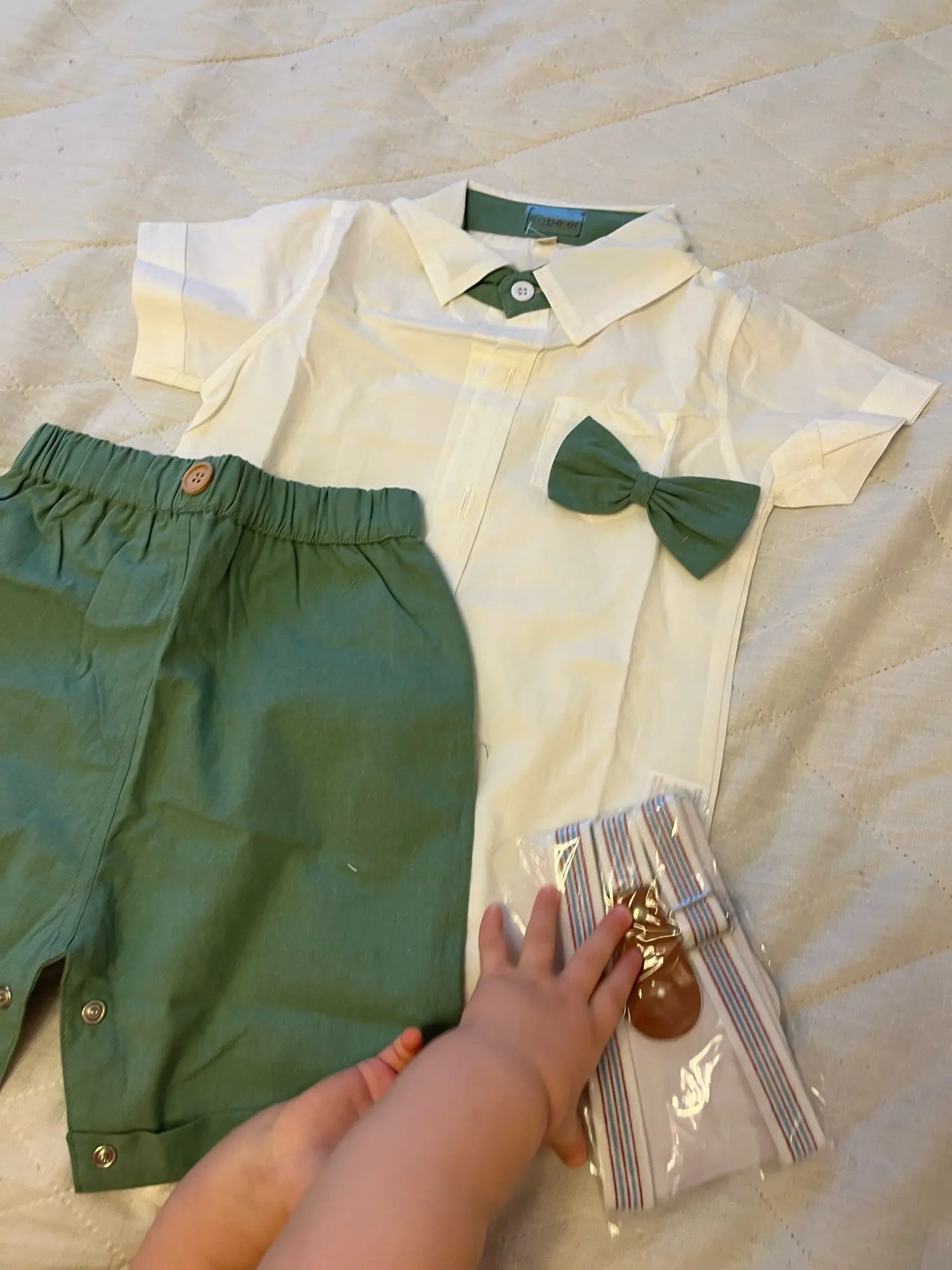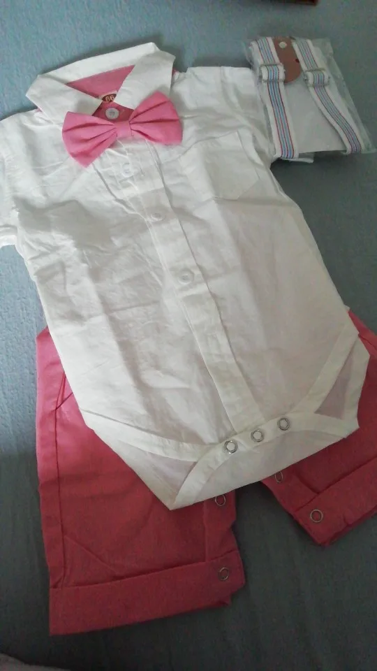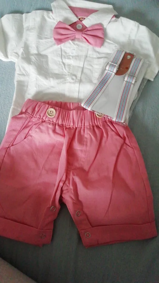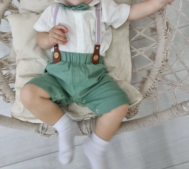 Vêtements d'été pour bébé garçon, costumes d'anniversaire, tenue de fête pour nouveau-né, en coton doux, couleur unie Rmper + pantalon à ceinture, ensemble pour nourrisson