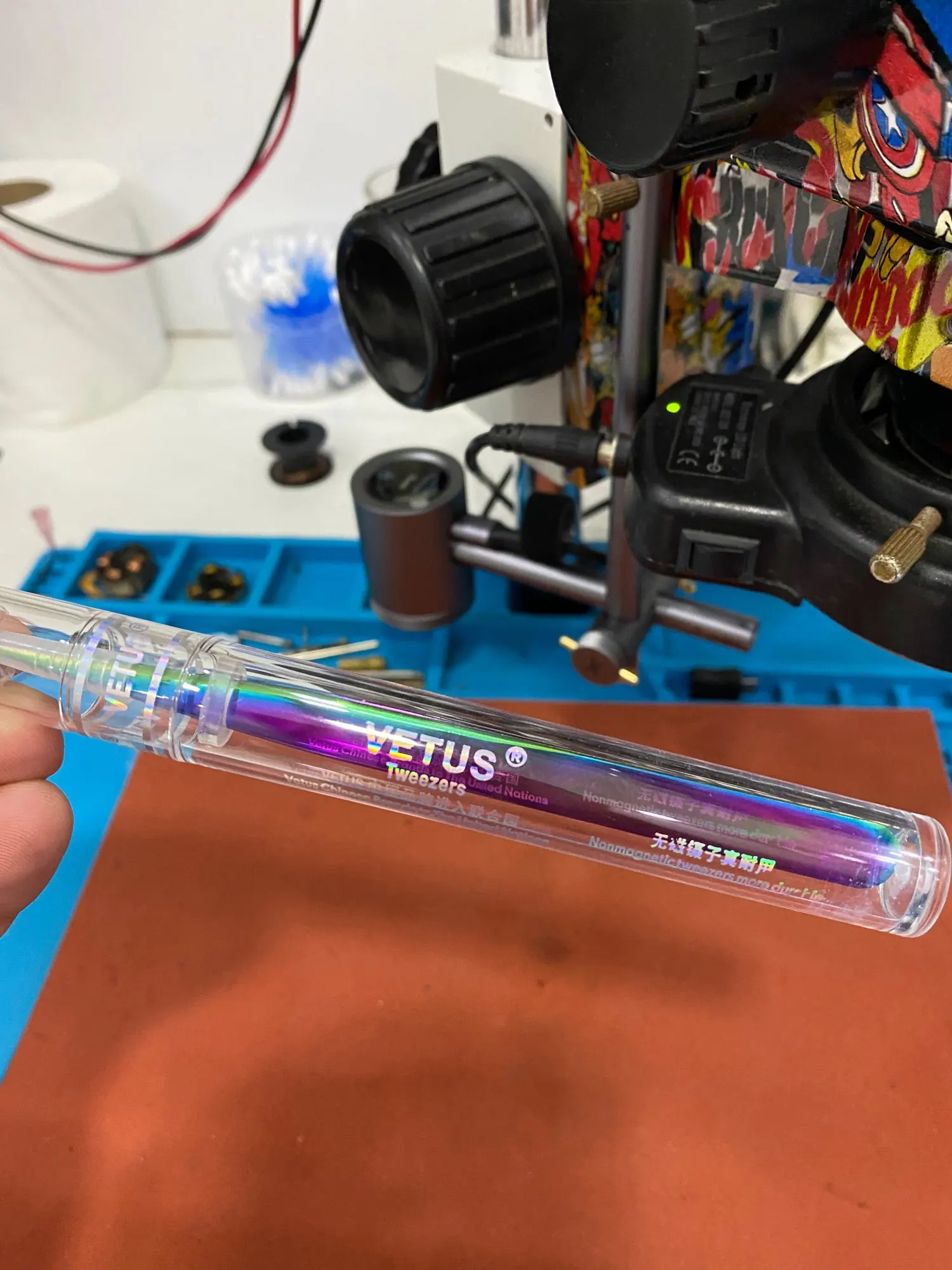 VETUS – pince à épiler couleur arc-en-ciel, en acier inoxydable, pour Extension de faux cils, série 100%/12, MCS-15