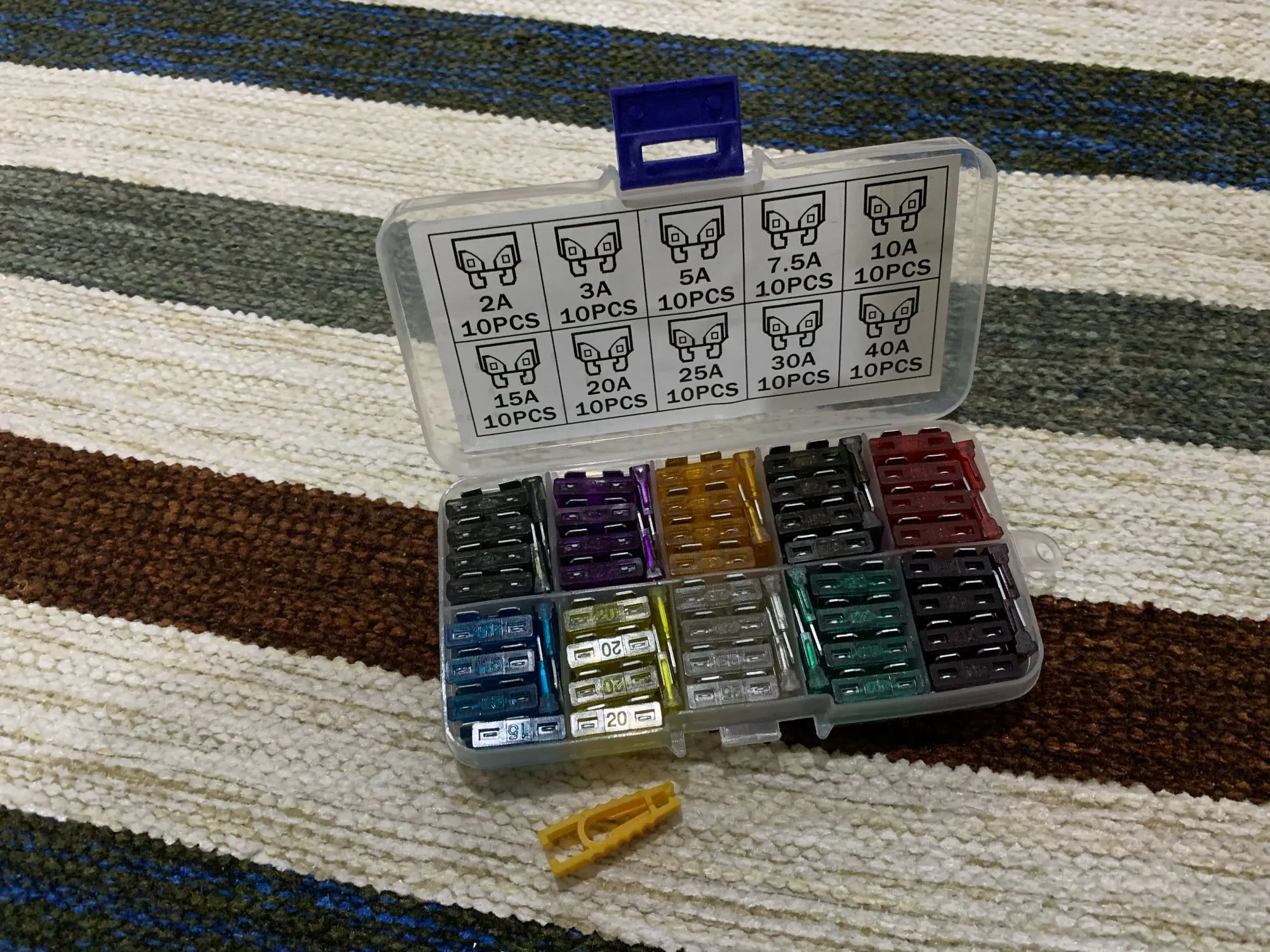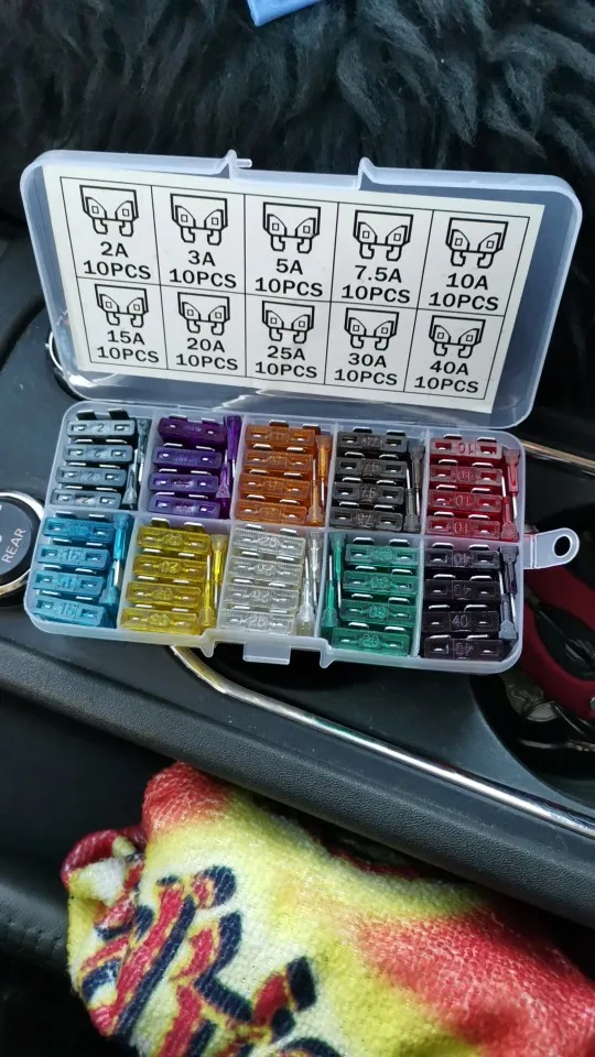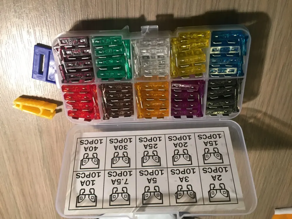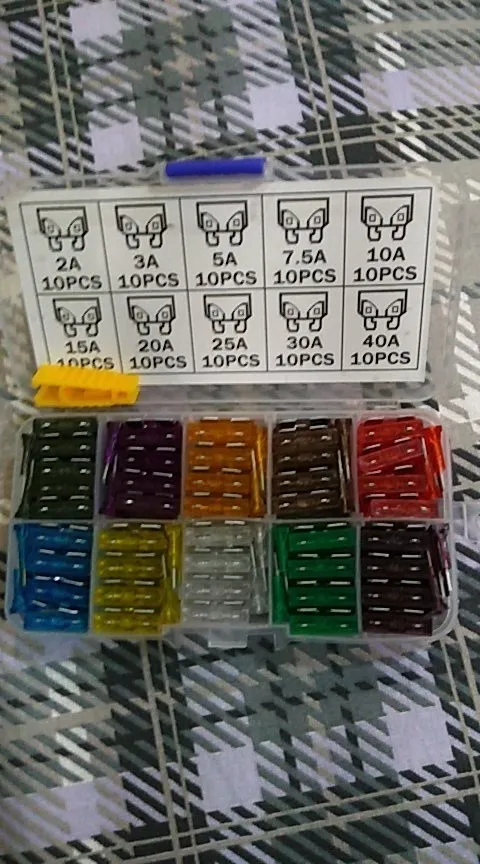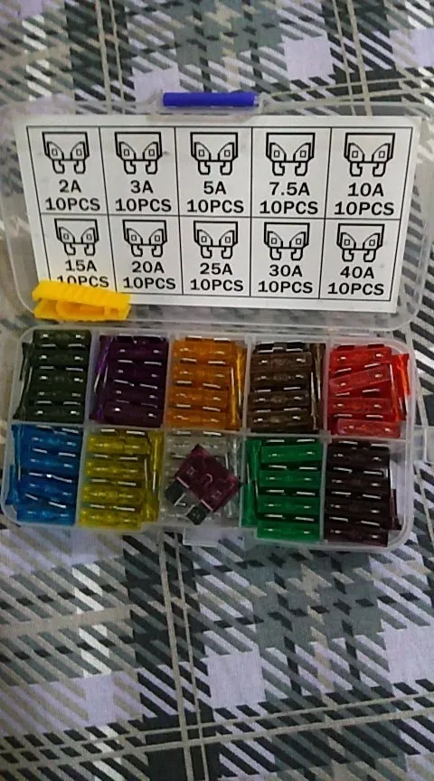 Viecar 100 pcs Moyen Voiture Fusibles 2A 3A 5A 7.5A 10A 15A 20A 25A 30A 40A + Clip Amp avec Boîte En Plastique Assortiment Auto Lame Fusible SUV