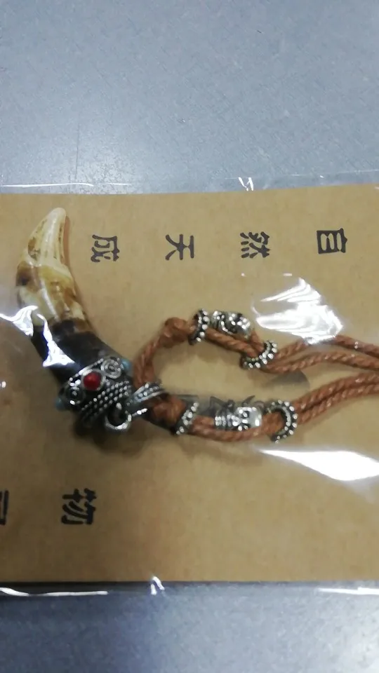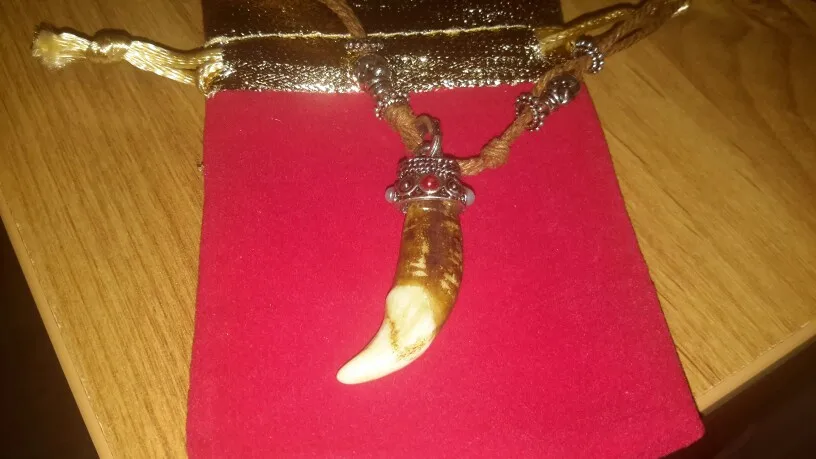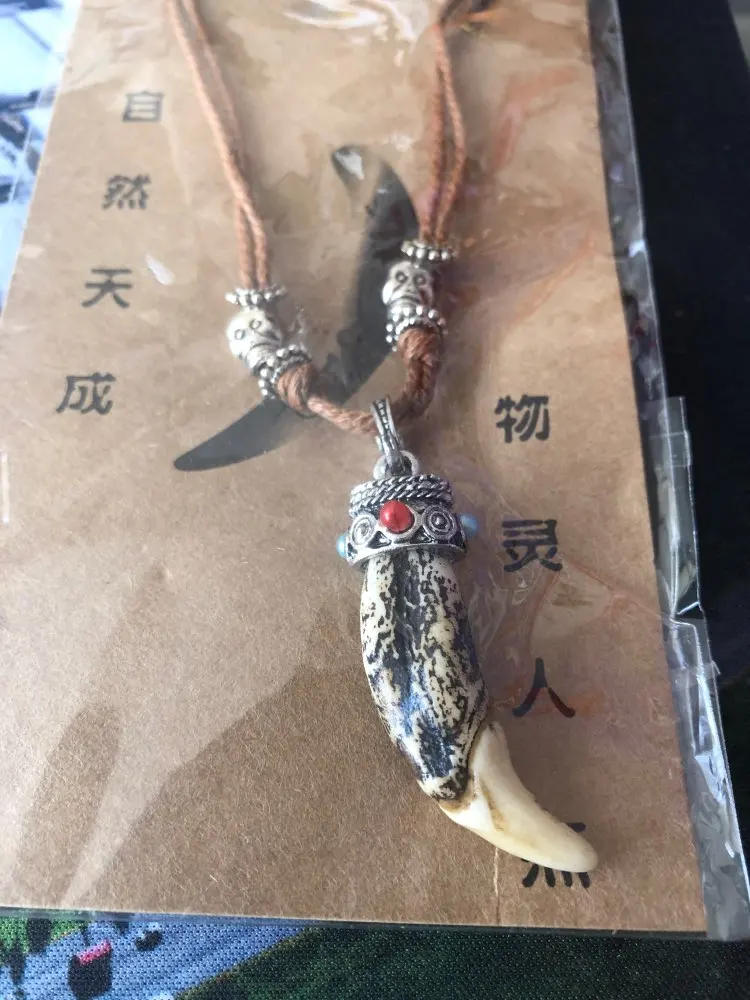 Vintage Femmes Hommes Tibet Bijoux Amulette Véritable Loup Brun Dents Canines Chien Pendentif Surfeur Collier De Chaîne De Corde Réglable NG015