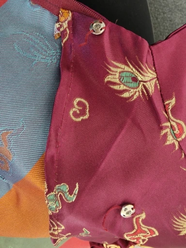 article trop petit,les boutons pressions ne servent à rien,ils ne tiennent pas du tout. dommage, posé à plat à l'ouverture du paquet c'était joli