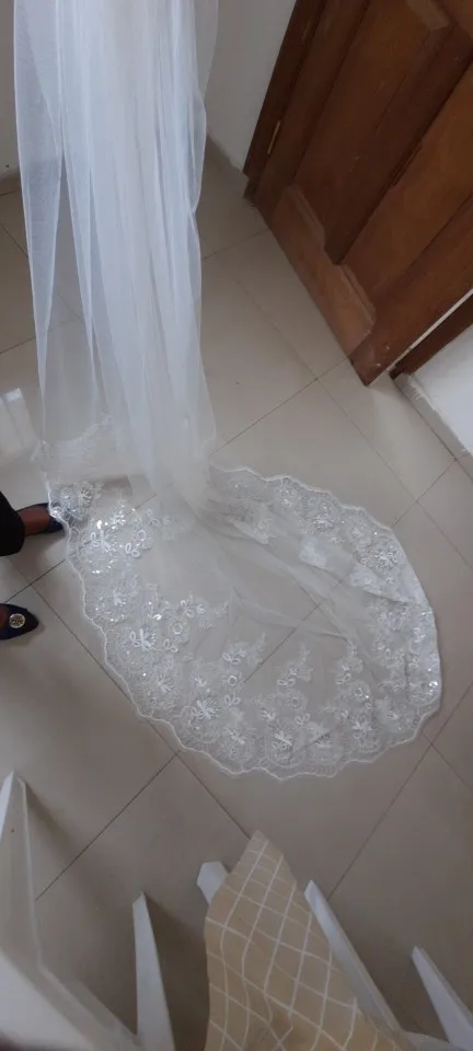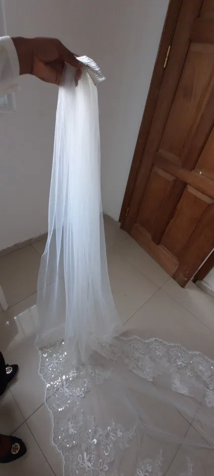 Voile de mariage en ivoire cathédrale, Long, bord en dentelle avec peigne, accessoires de mariage