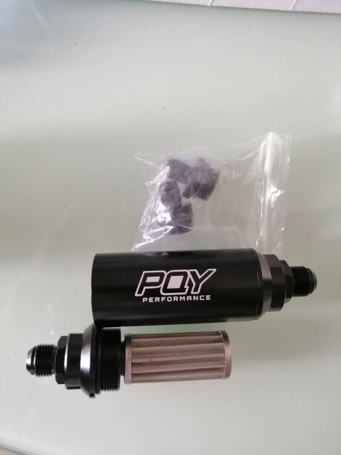 WLR RACING - PQY 44mm nouveau filtre à carburant avec 2 pièces AN6 et 2 pièces AN8 raccords adaptateur avec élément en acier de 60 microns WLR5565