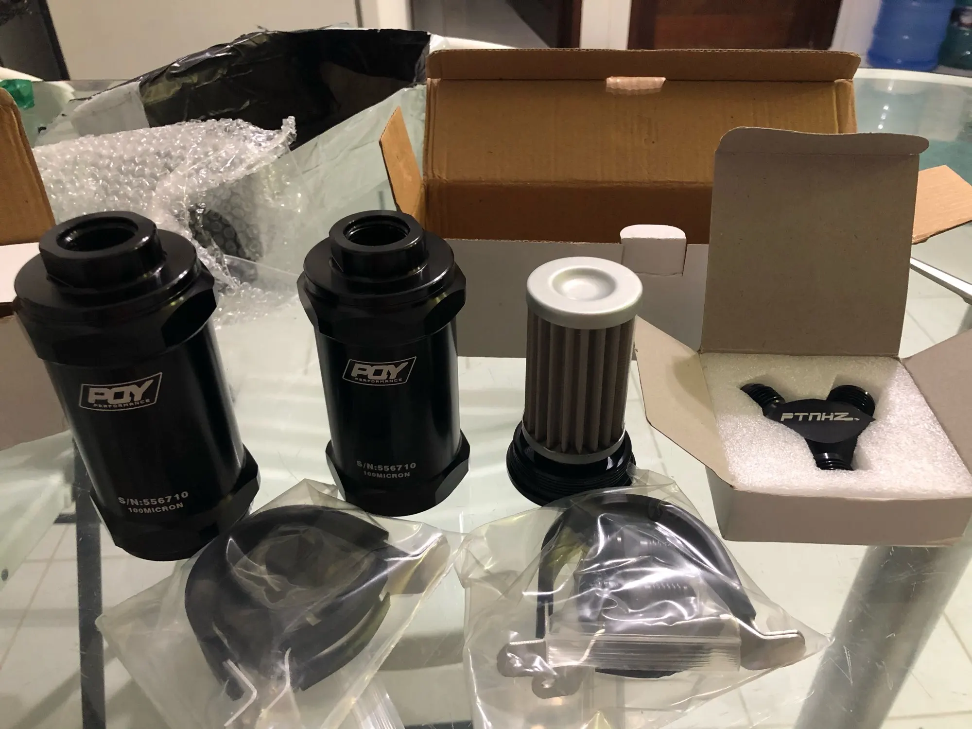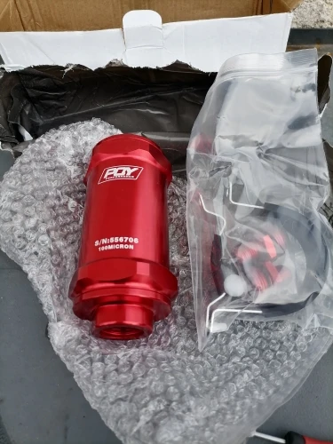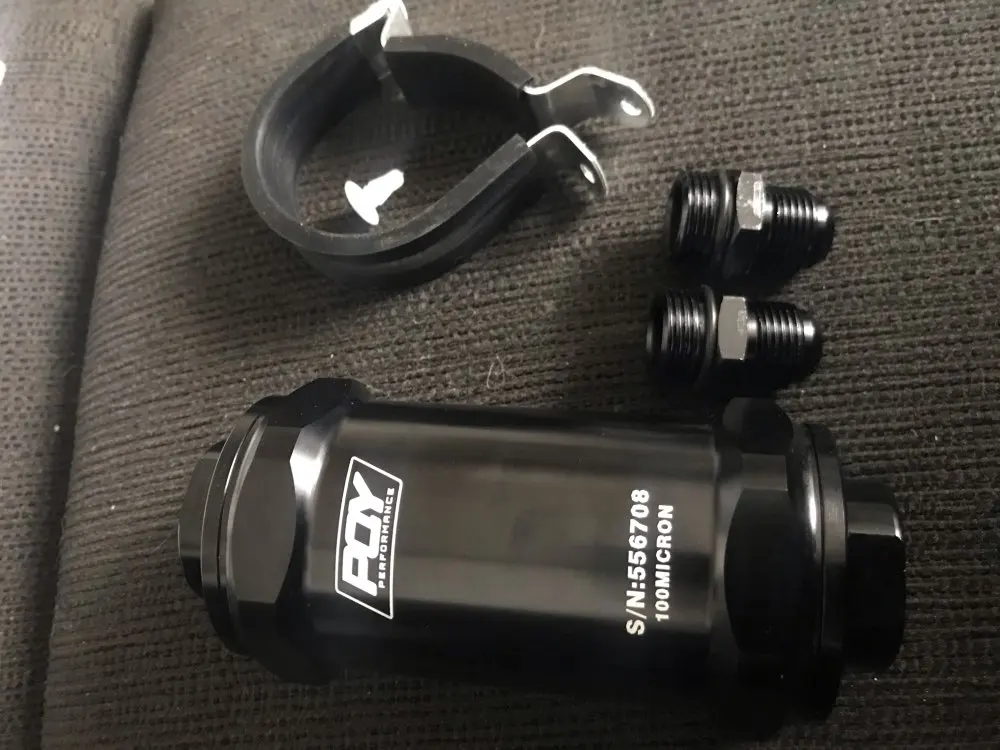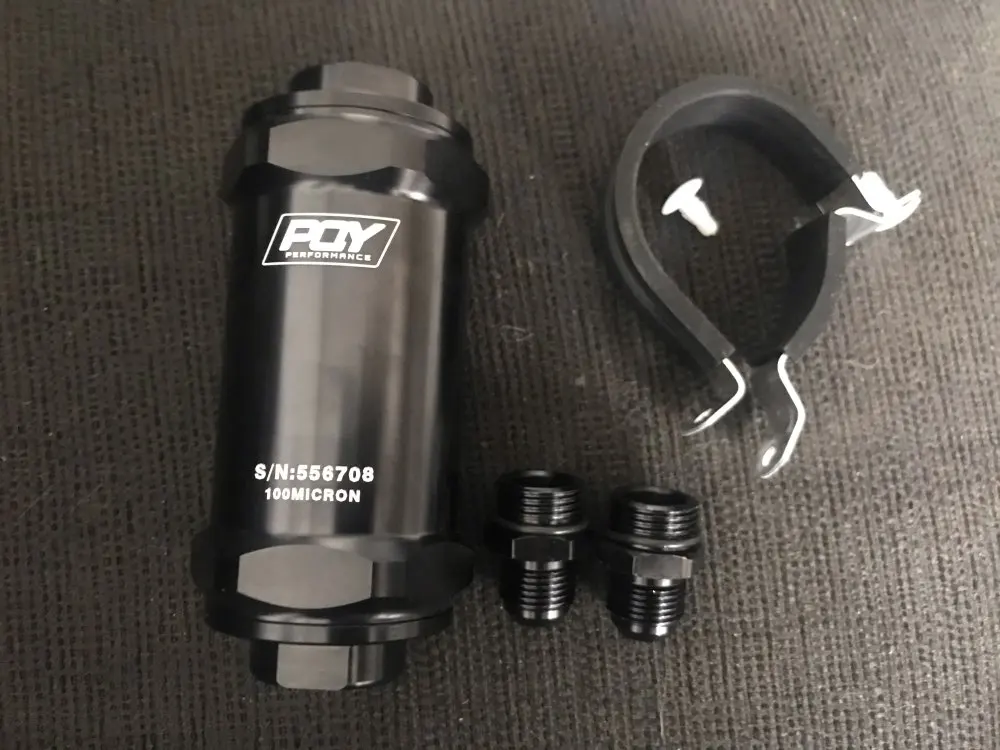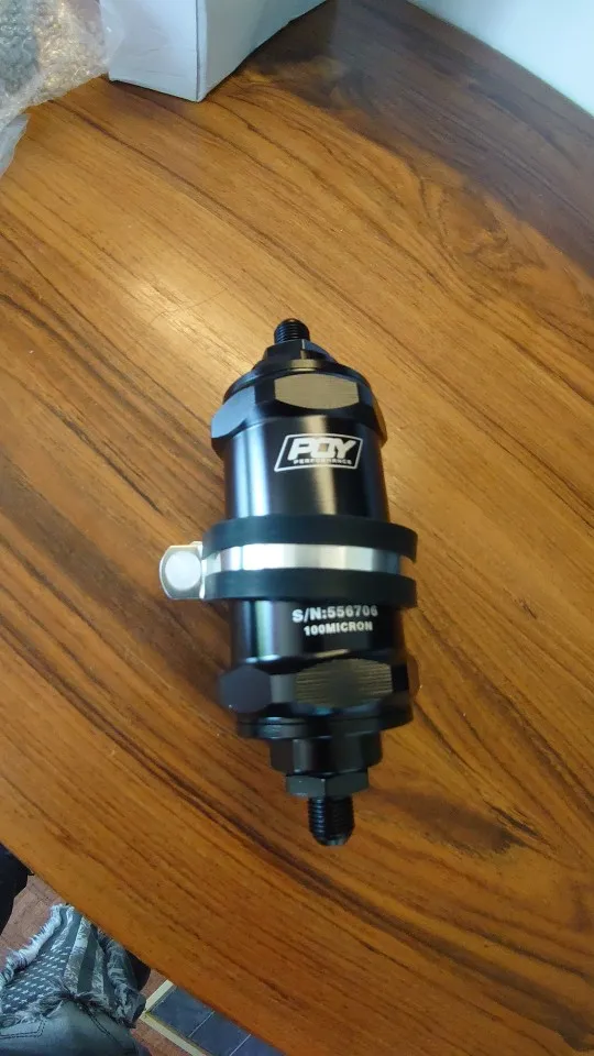 WLR RACING - PQY noir AN6 / AN8 / AN10 filtre à carburant en ligne E85 éthanol avec élément en acier inoxydable de 100 microns et autocollant PQY