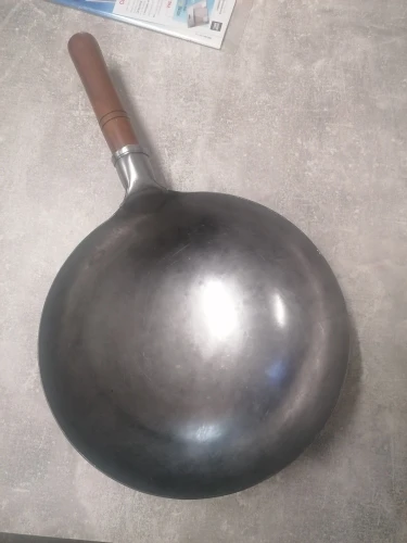 Wok Pan, pas de produit chimique, Wok de fer traditionnel chinois avec manche en bois détachable, cuisine de cuisine martelée à la main résistante aux rayures Cookwar