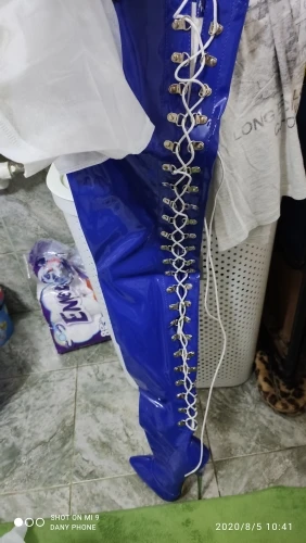 Wonderheel – bottes d'entrejambe en cuir verni à bout pointu, talon Ultra haut d'environ 18cm, avec laçage au dos, Sexy, fétichiste