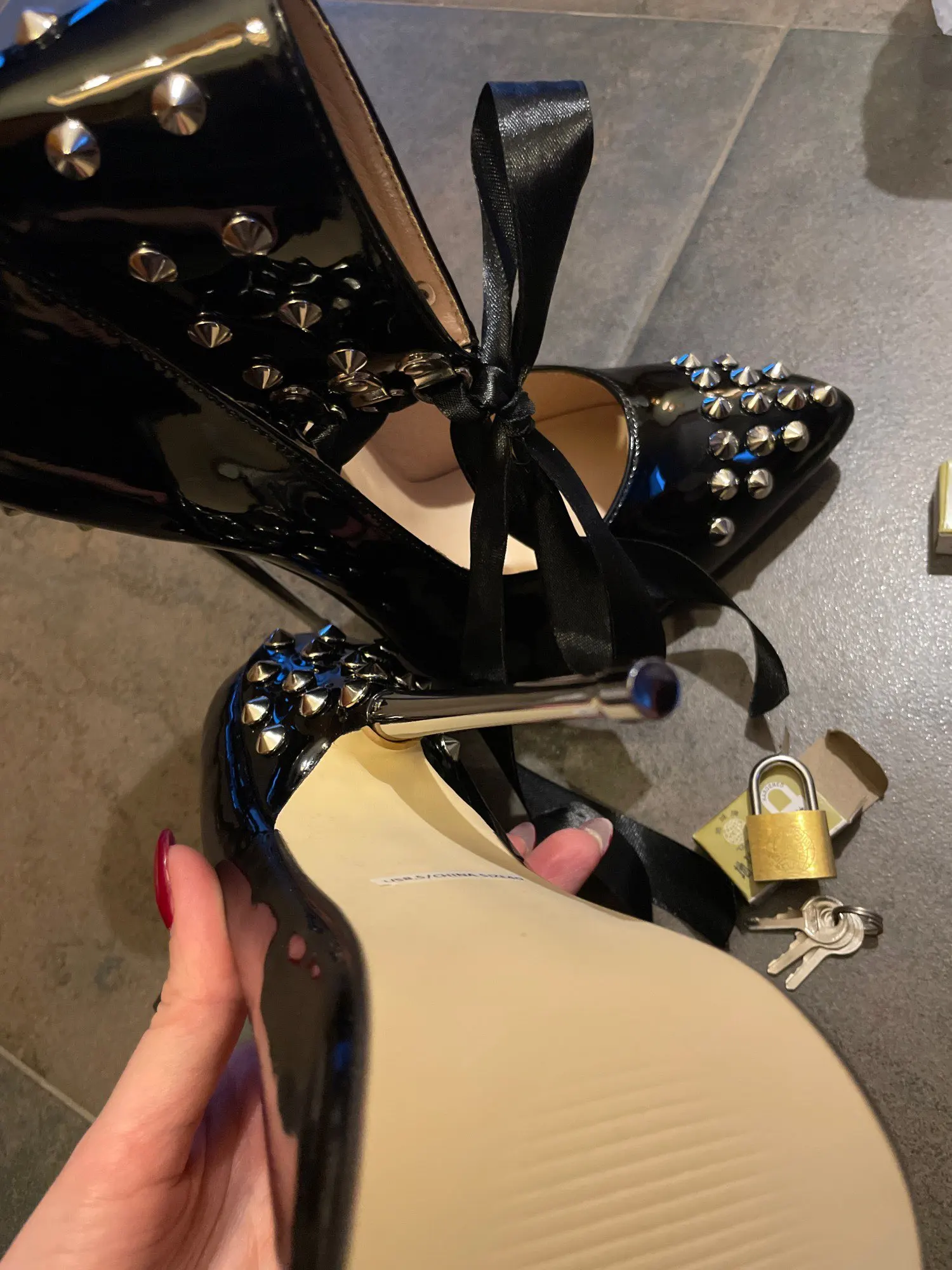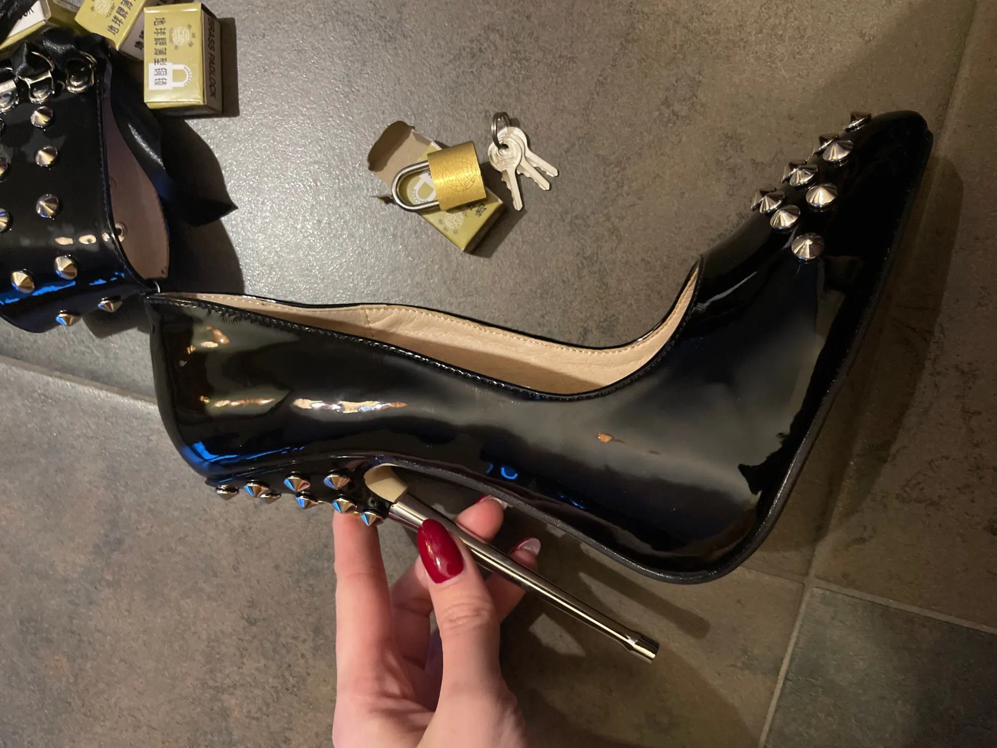 Wondertalon aiguille Sexy, 16cm, taille extrême, cadenas verrouillables, lanière pour cheville, Rivet à bout pointu, escarpins de fête pour femmes