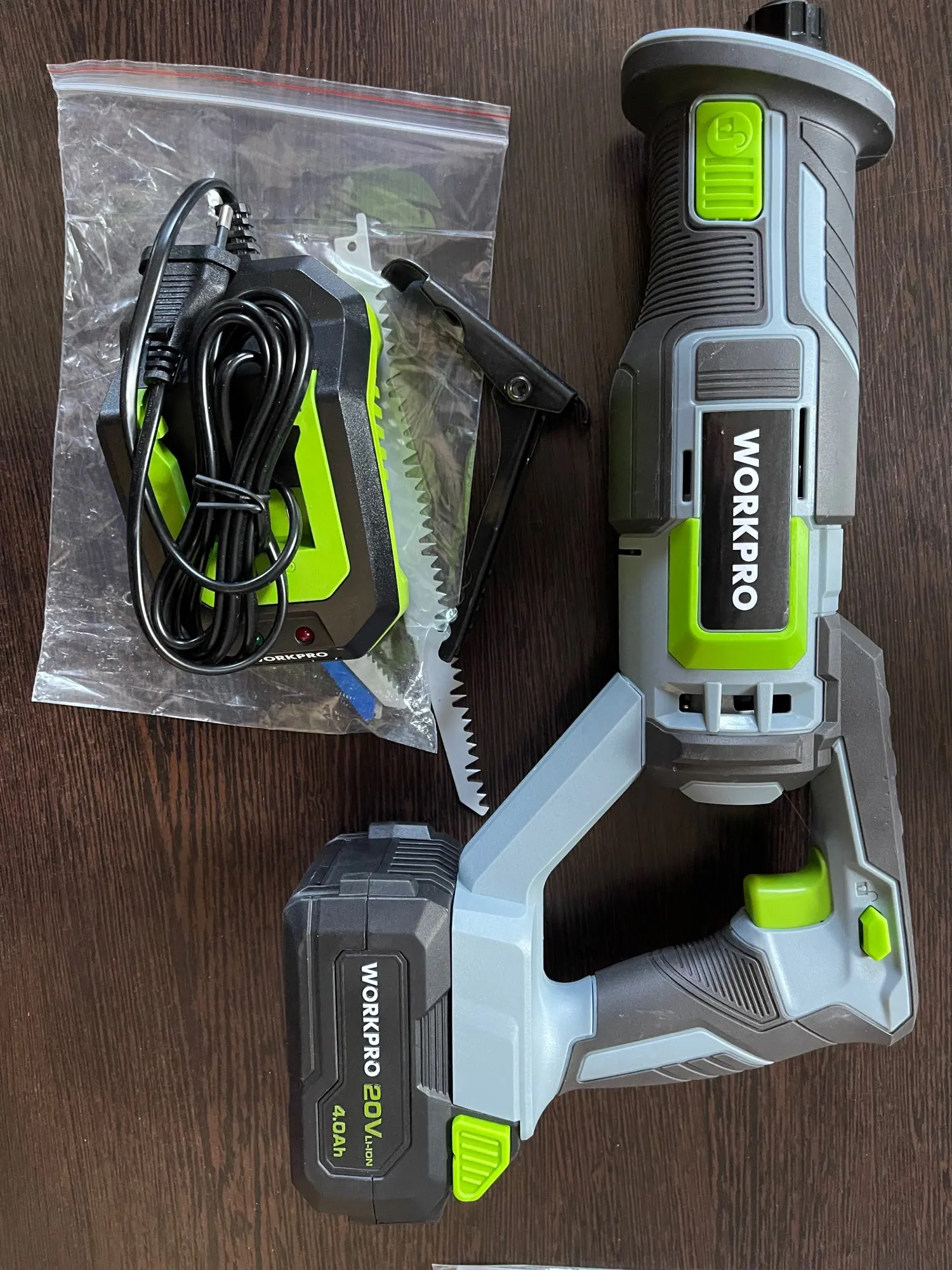 WORKPRO 20V scie alternative sans fil longueur de course de 1 pouce pour la coupe du bois et du métal avec 4 lames de scie trousse à outils