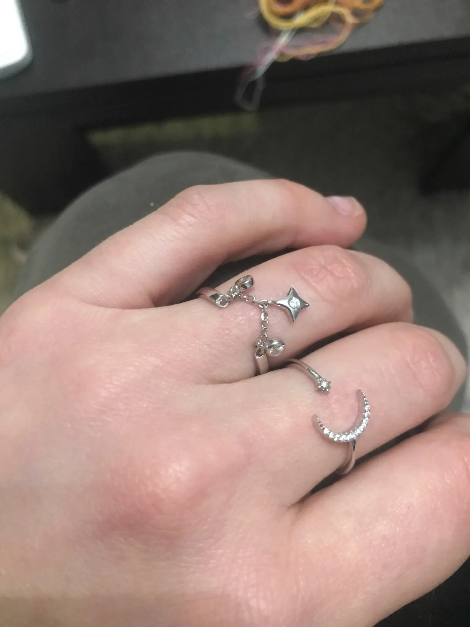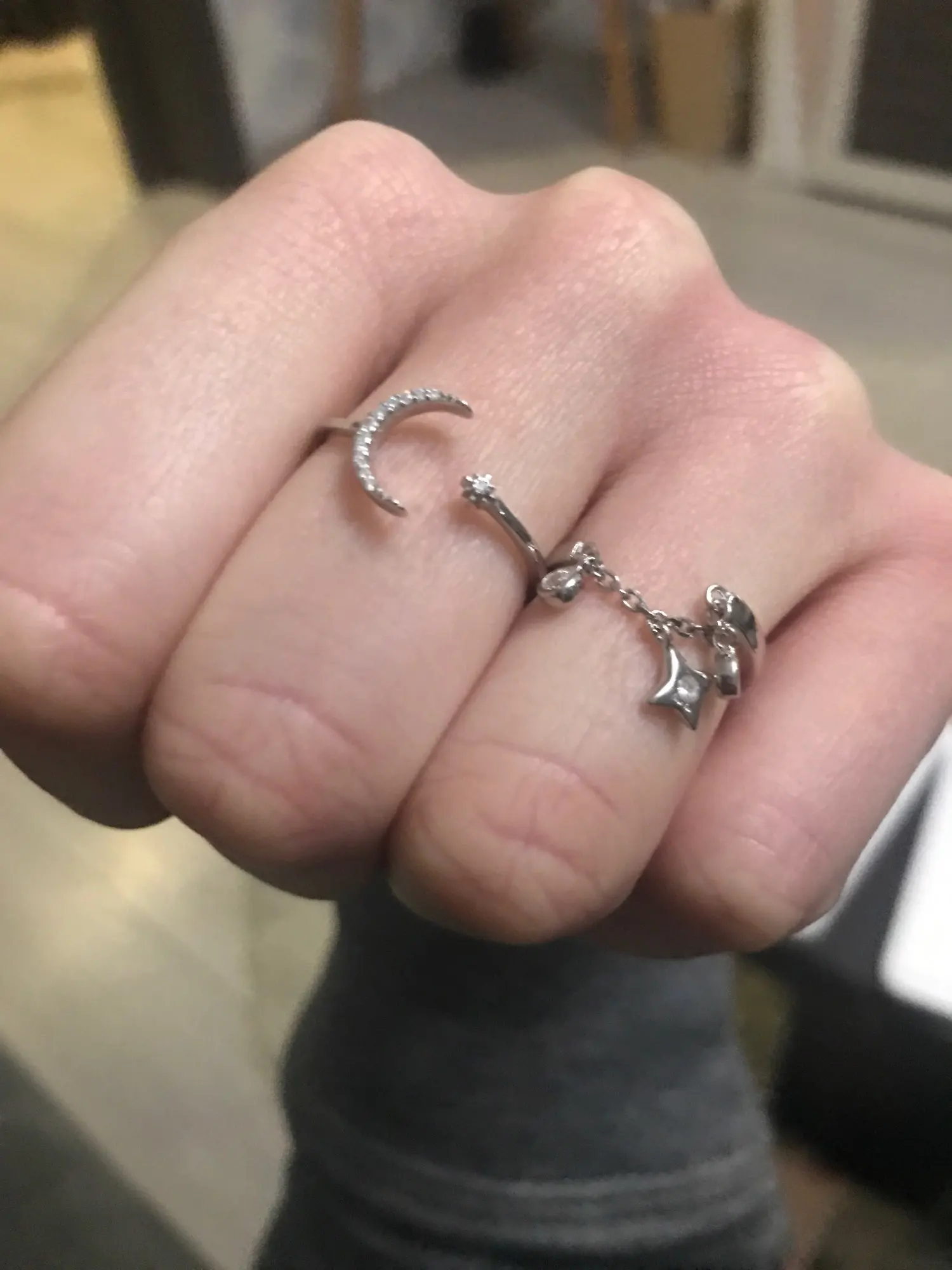 Dommage que les bagues ajustables correspondent plus à des tailles pour enfants même en les ouvrant beaucoup. S'accroche facilement