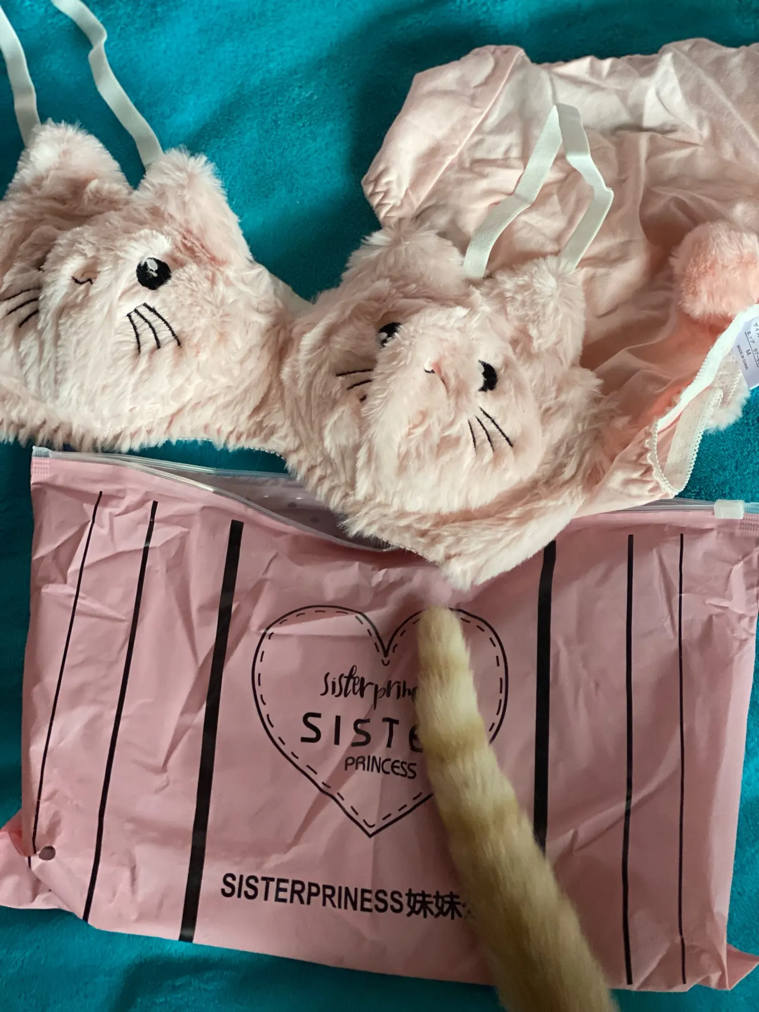 Wrufred – ensemble de lingerie en peluche rose pour fille, sous-vêtements en pur coton, avec chat brodé, sans anneau en acier, taille basse