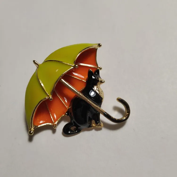 Wuli & bébé mignon chat sous parapluie broches pour les femmes émail 4-couleur renard Animal fête décontracté broche broches cadeaux