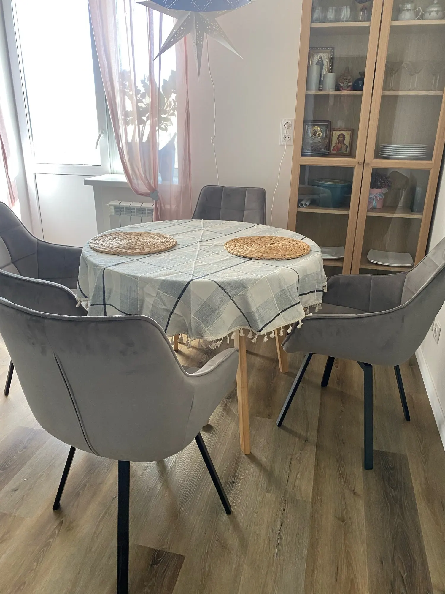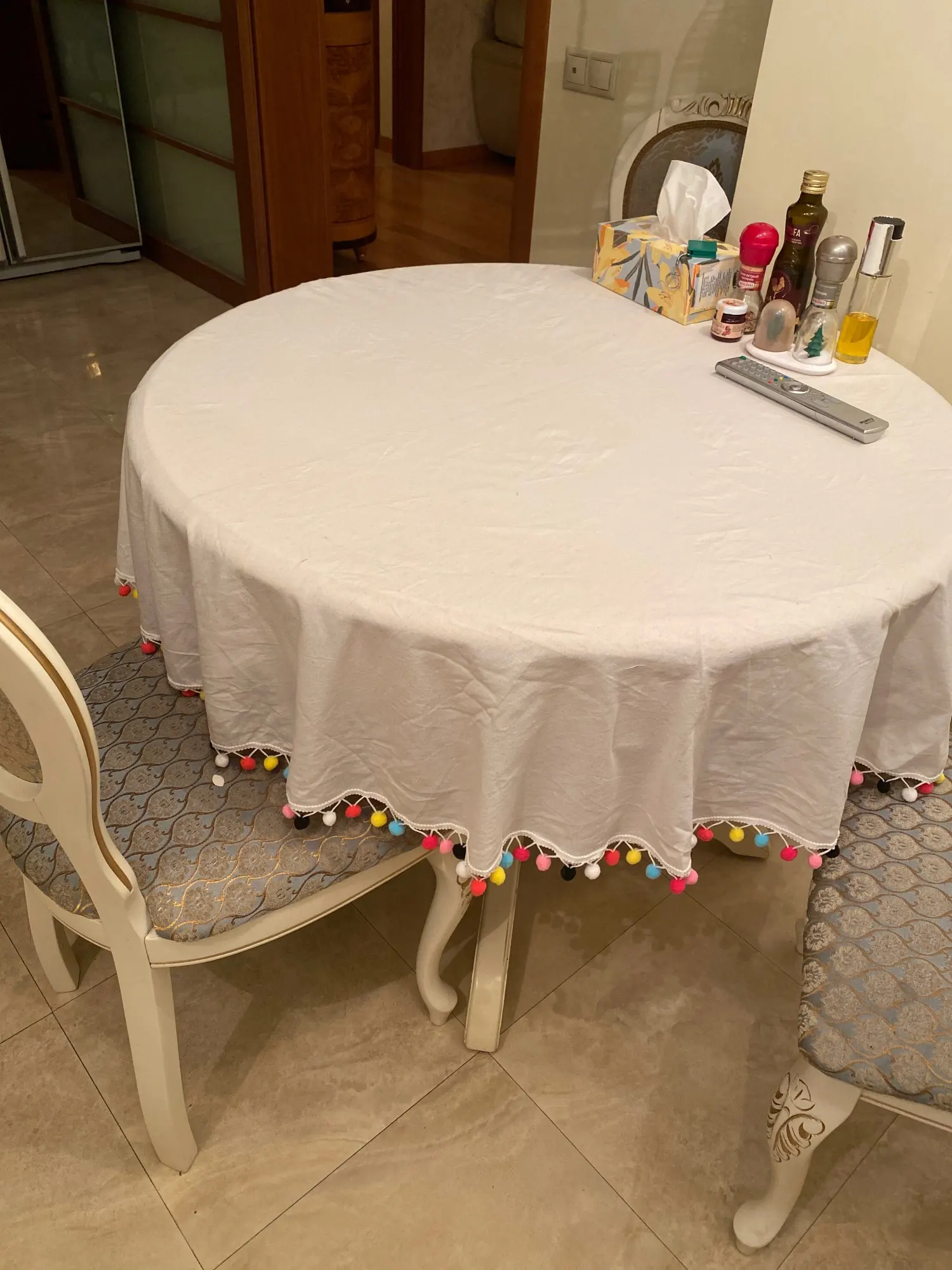 Yaapeet – nappe ronde de couleur unie, avec pompon blanc, protecteur de Table à thé, tissu de pique-nique, toile de fond en coton et lin, décor de Table