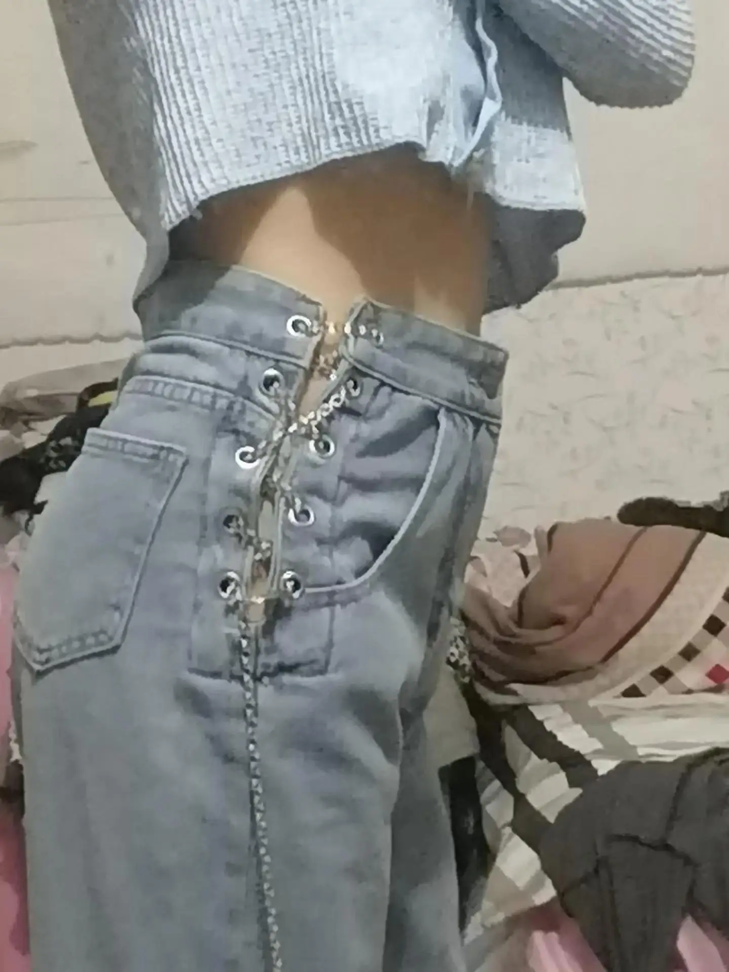 YICIYA – Jean à jambes larges pour femmes, pantalon Sexy et élégant avec chaîne latérale croisée, ajouré, taille haute, mode européenne