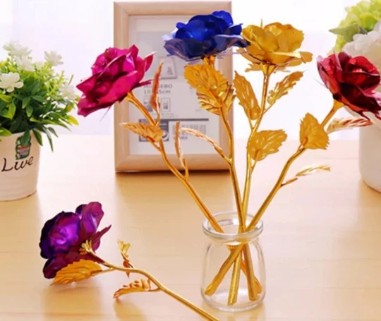Plastic, Polyethylene, metal,artificial 24K gold plated rose