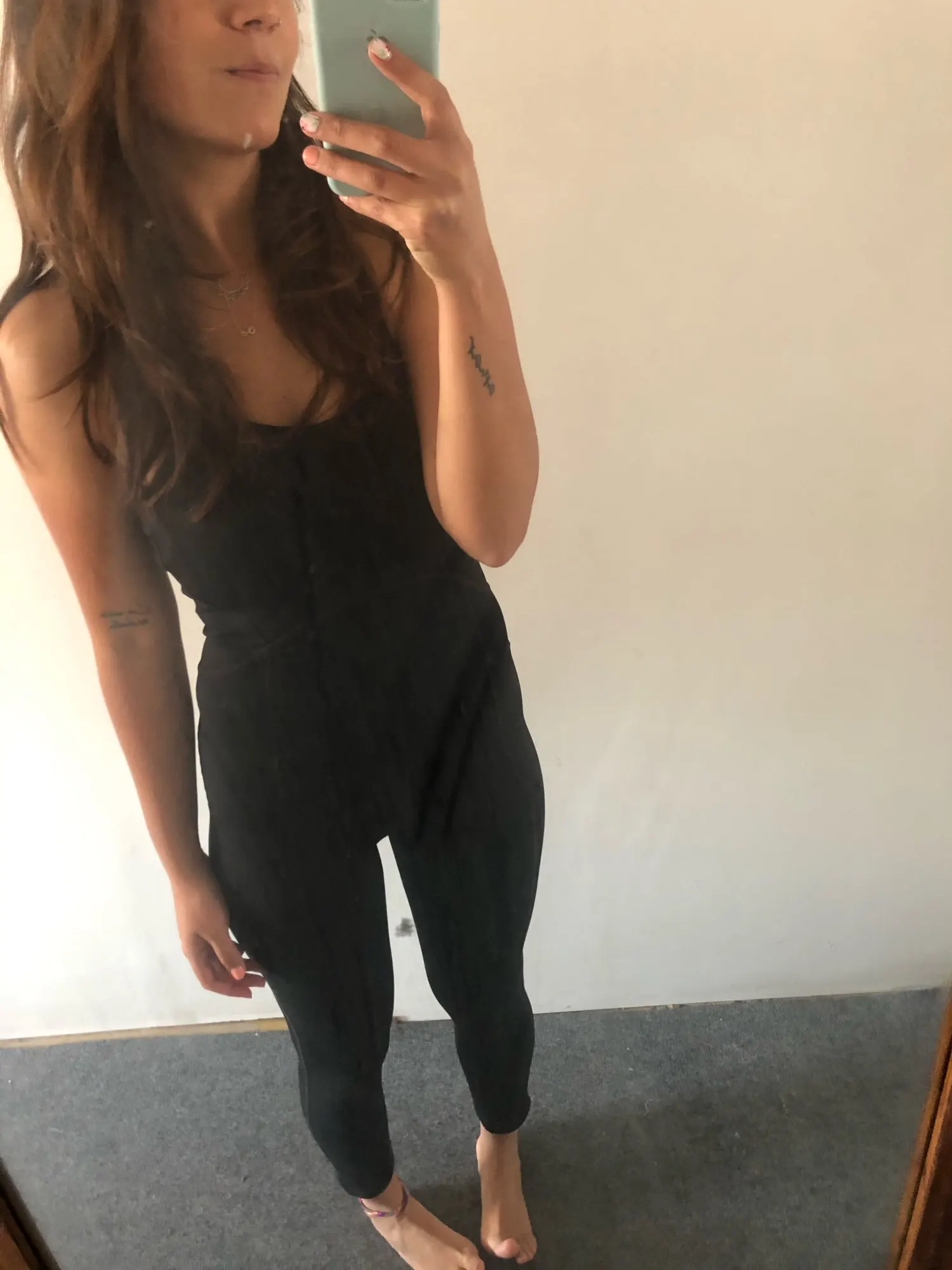Le matière est la même que celle d'un maillot de bain. J'ai pris la taille qui me correspond d'habitude. Attention au sous-vêtements que vous aller mettre en dessous car le vêtement est très moulant et légèrement échancré au niveau des seins. Je pense que c'est le vêtement parfait pour faire du cardio sur une machine.