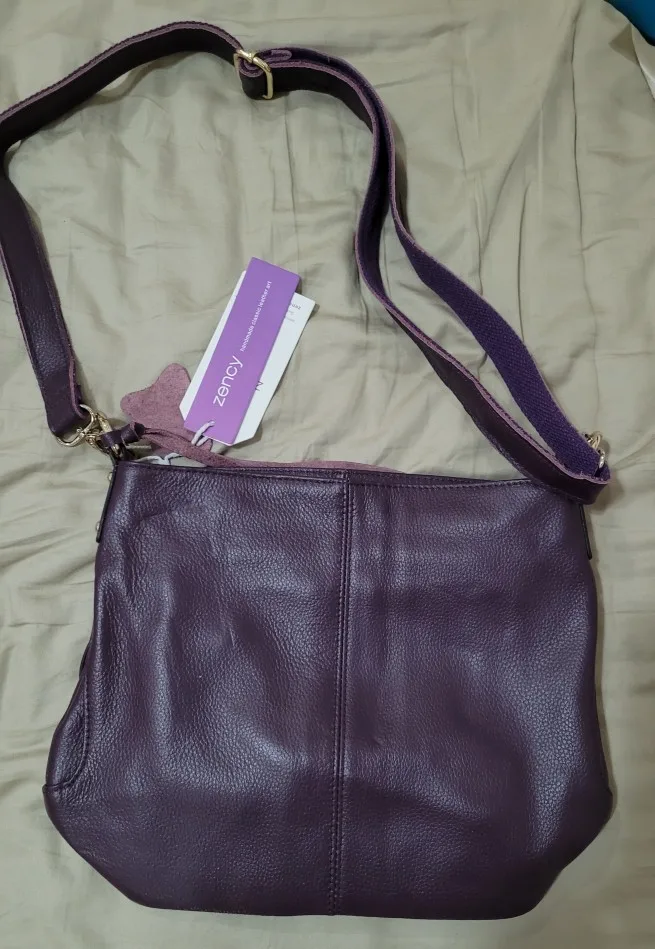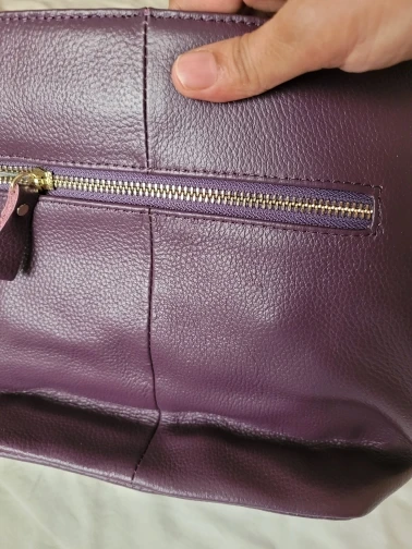 Il mesure approximativement 10,5 cm x 24,5 cm x 27 cm. Je le trouve un peu petit mais mon sac précédent était légèrement plus grand. J'aime bien la répartition intérieure avec une poche fermée par glissière au milieu. Le cuir à l'air de bonne qualité, à voir à l'usage s'il résiste aux chocs quotidiens.