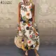ZANZEA robe d'été femmes Vintage sans manches imprimé fleuri longue robe coton lin robe de soleil Baggy plage Vestido Sarafans 5XL