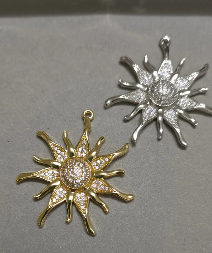 ZHUKOU – pendentifs en forme de fleur de soleil pour femme, breloques en cristal, couleur or/argent, DIY, fabrication de bijoux, fournitures, vente en gros, VD286