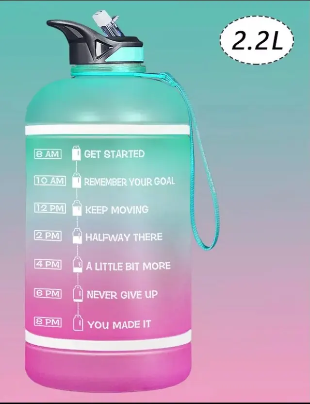ZOMAKE – grande bouteille d'eau 2,2 l, avec marqueur de temps et paille, carafe à eau de motivation sans BPA, étanche, pour la gymnastique