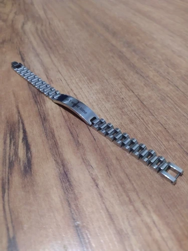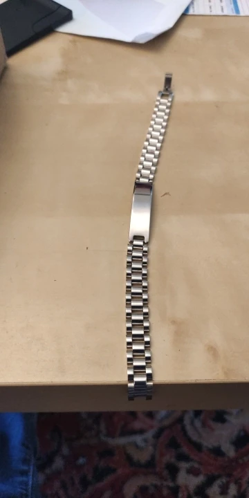J'ai adoré la gravure et la gourmette. Elle est un peu plus fine que je ne le pensais mais ce n'est pas plus mal car pas de risques que ça fasse mal aux hommes ayant des poils aux bras. Par contre j'avais demandé de graver les 2 côtés mais qu'un seul des deux à été fait, mais sinon parfait. Livraison super rapide, article arrivé en +/- 10 jours. Merci beaucoup au vendeur. (Prévoir boîte si c'est pour offrir).
