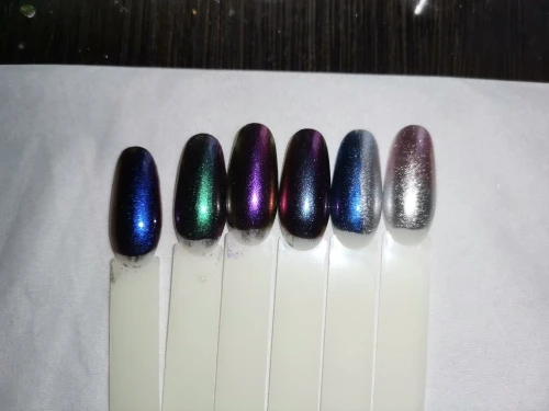 мне не понравился, блеск только при вечернем освещении,а так просто серый