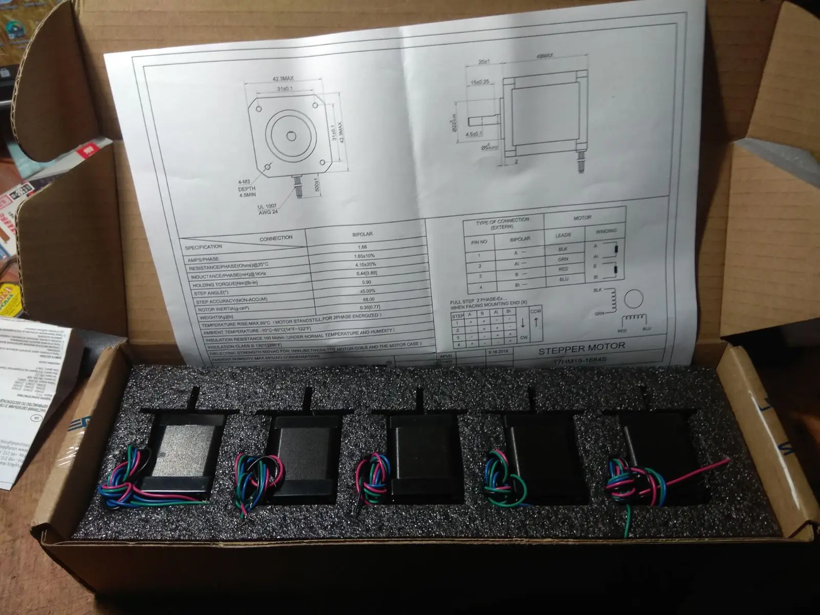 Посилка йшла досить довго більше двох місяців. Упаковано солідно, коробка досить міцна. Поки не перевіряв на роботу, як перевірю. Ну і шкода що провода без конекторів. На вигляд двигуни добротні.