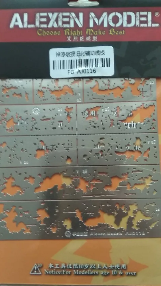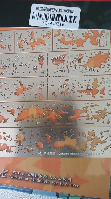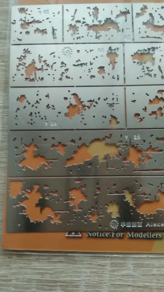 трафарет разьединяется на части, для покраски мелочи. удобный, можно согнуть по форме.