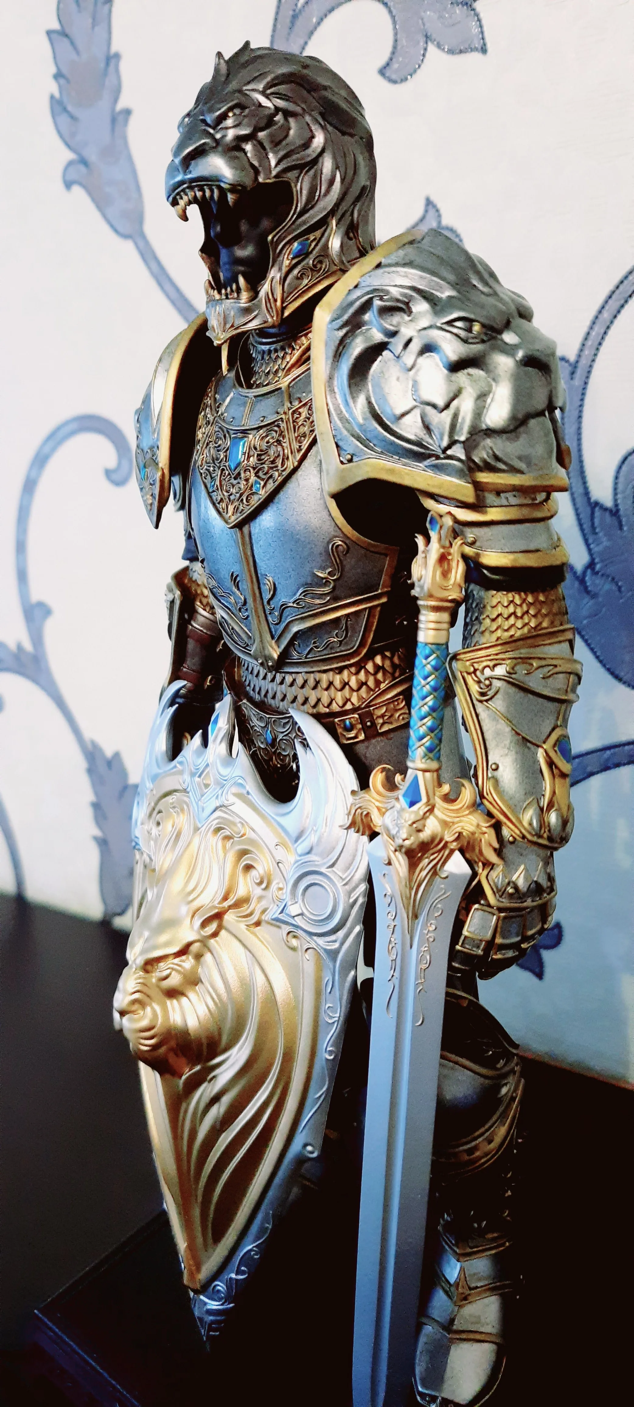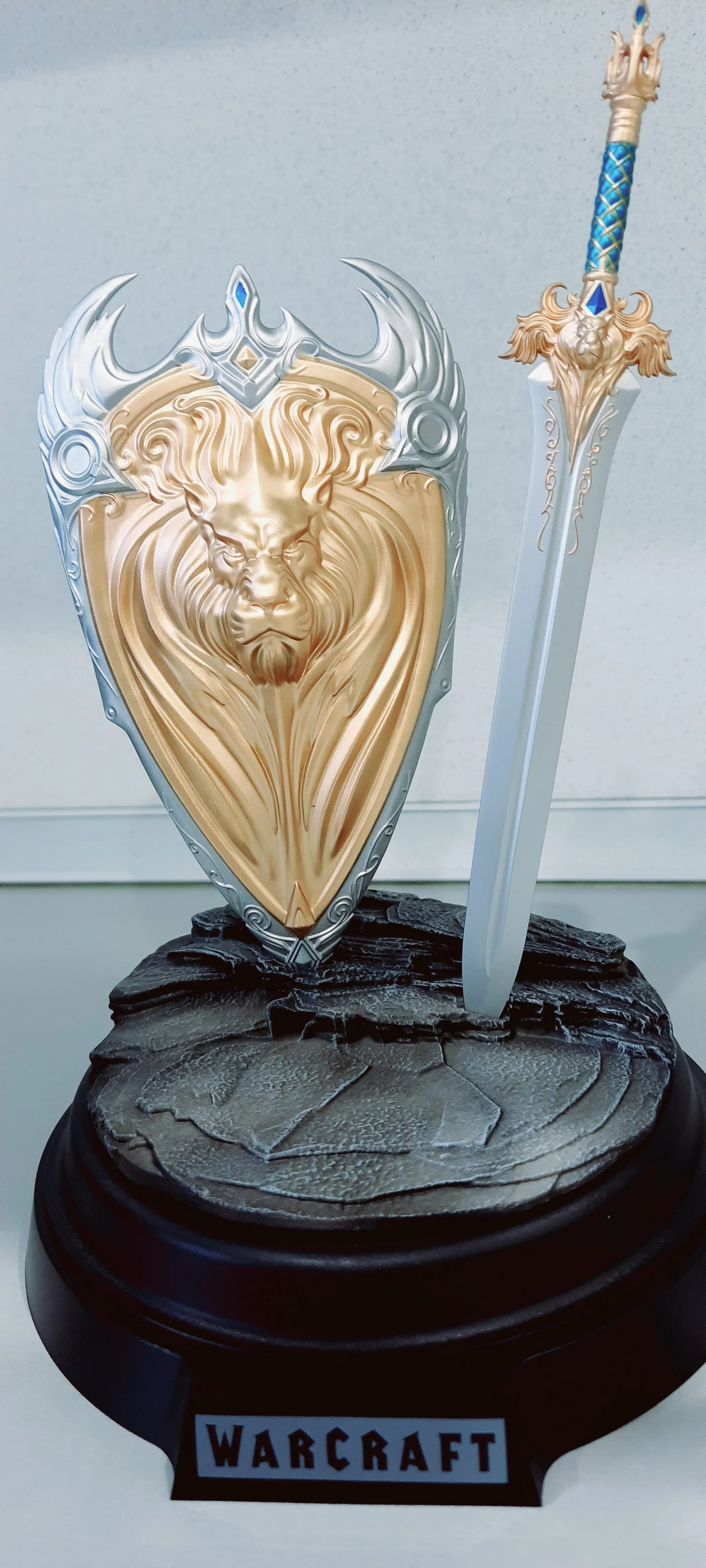 Брал данный товар в дополнение к модели доспехов короля Ллейна от Weta workshop т.к сама weta по итогу не стала выпускать данное оружие. Детализация у данного товара средняя, многие детали упрощены (нет рун на лезвии, клыков на рукоятке, большой синий ромб на той же рукояти меча,пластиковые ремни на щите итд) если б на модели применили смывку то смотрелось бы куда более сердито..ну да ладно, на безрыбье и рак сойдет. В целом претензий к товару нет -сделано по честному, и если вы не требовательный коллекционер, то в подарок например вполне себе сойдет.могу рекомендовать данный магазин