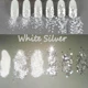 1 банка для ногтей/коробка, 10 мл, белый, серебристый, Микс, блестящий порошок для ногтей, пудра с блестками, 1 мм, 2 мм и 3 мм, для дизайна ногтей, б...