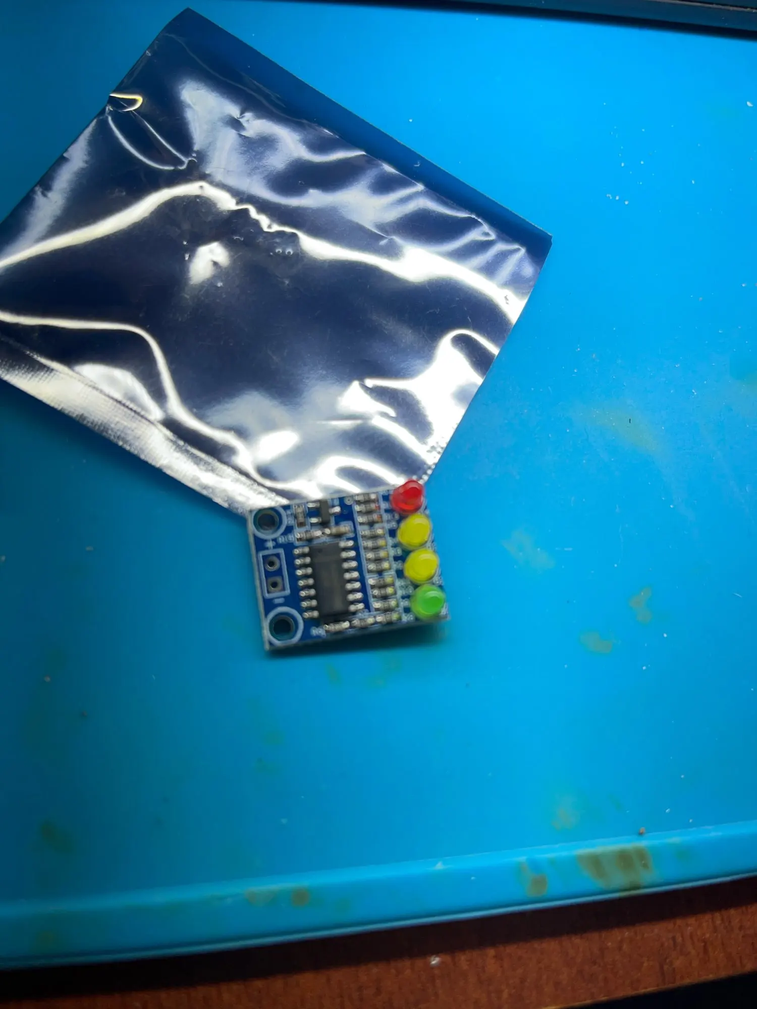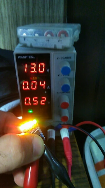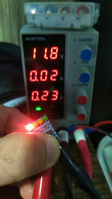Индикатор для автоаккумулятора, на полностью заряженом литии 12,6в высвечивает лишь первые две ступени (красную-желтую).