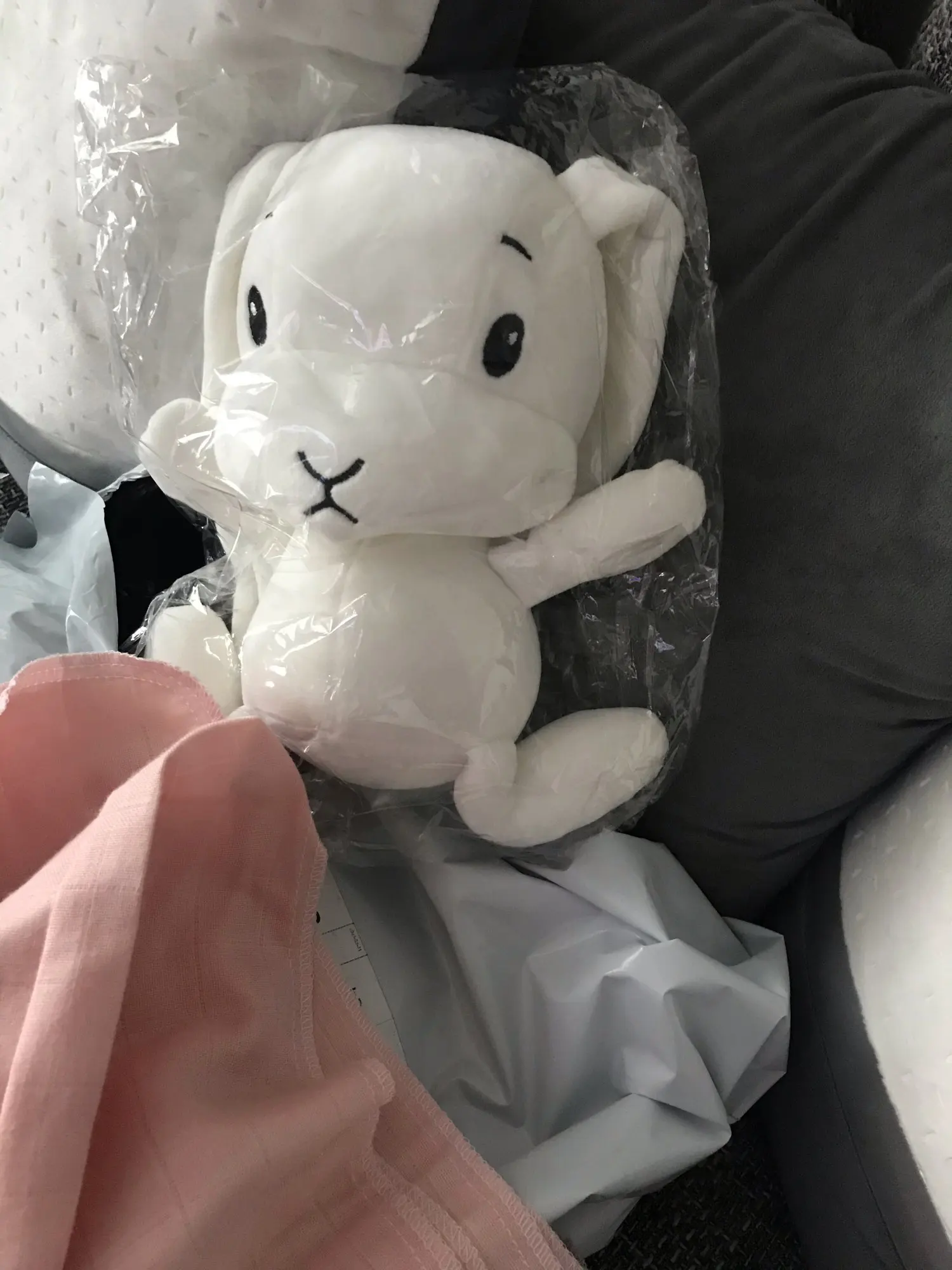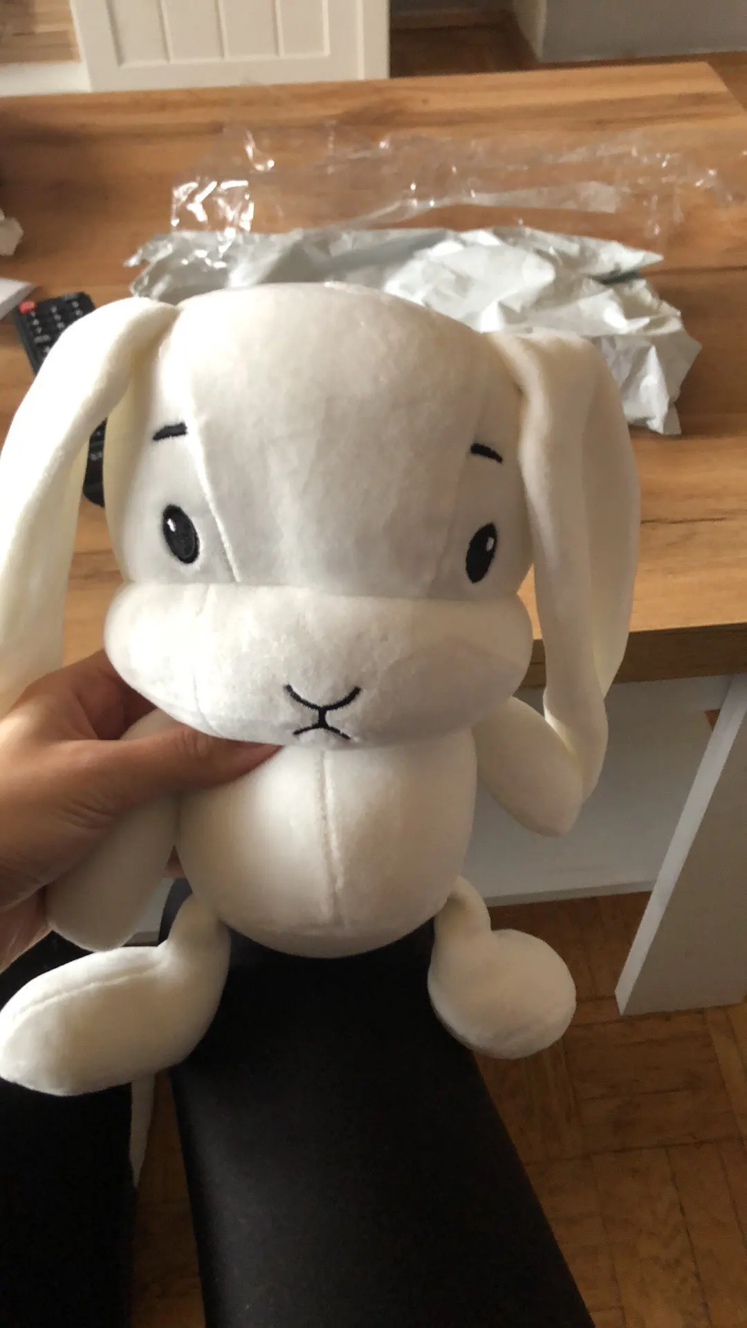 Милый мягкий кролик, приятный на ощупь. Дети в восторге! Супер быстрая доставка, посылка дошла в Ижевск за 11 дней со дня заказа. Продавца рекомендую.