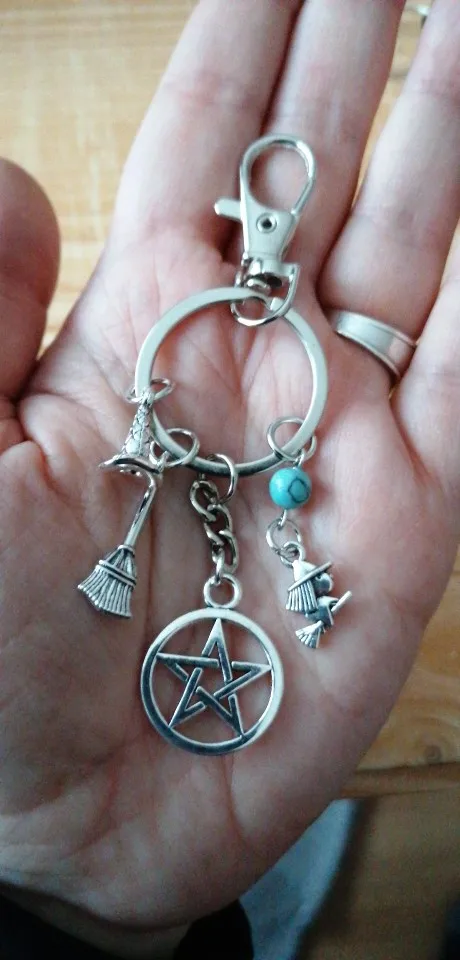 1 шт. брелок для ключей с сумочкой ведьмы, брелок с шляпой ведьмы, Pentacle, метлой, брелок для ключей лучшего друга