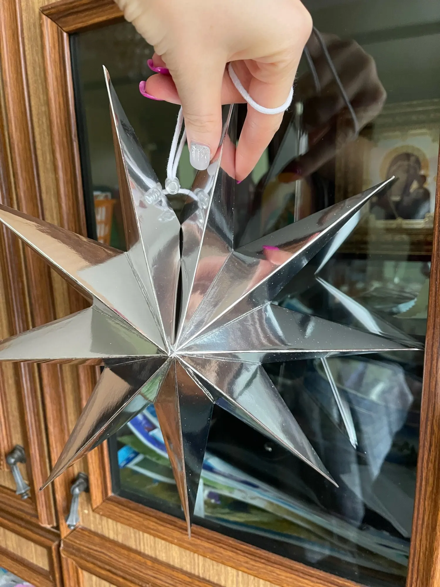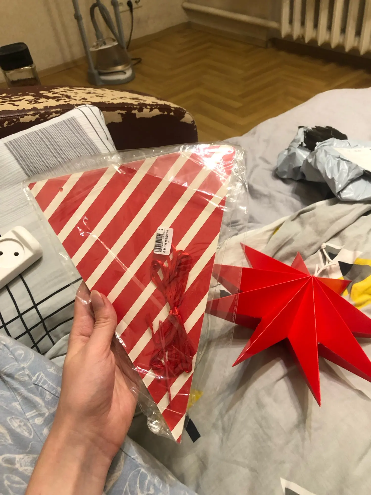 Хорошая звездочка, думала до НГ не прийдет, но пришла. Меньше, чем за месяц.Картон очень плотный, сложилась без проблем. Для украшения интерьера самое то. Советую.