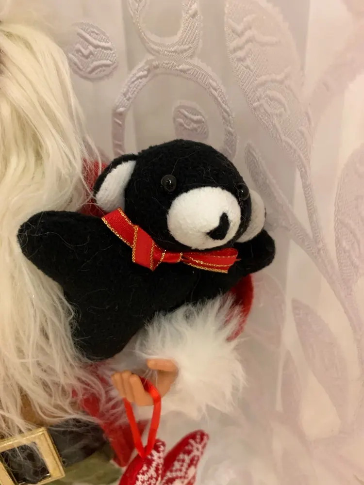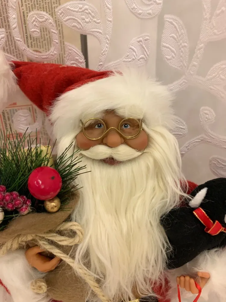 Санта полностью соответствует описанию. Сделан давольно-таки качественно, в подарок положили ёлочную игрушку - оленя (на фото #2)