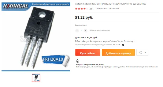 На корпусе имеется заводская маркировка FRH20A10 Но реально внутри корпуса находится FСH20A10, Common Cathode (Общий катод - средний вывод) Ошибся рабочий на заводе :-)