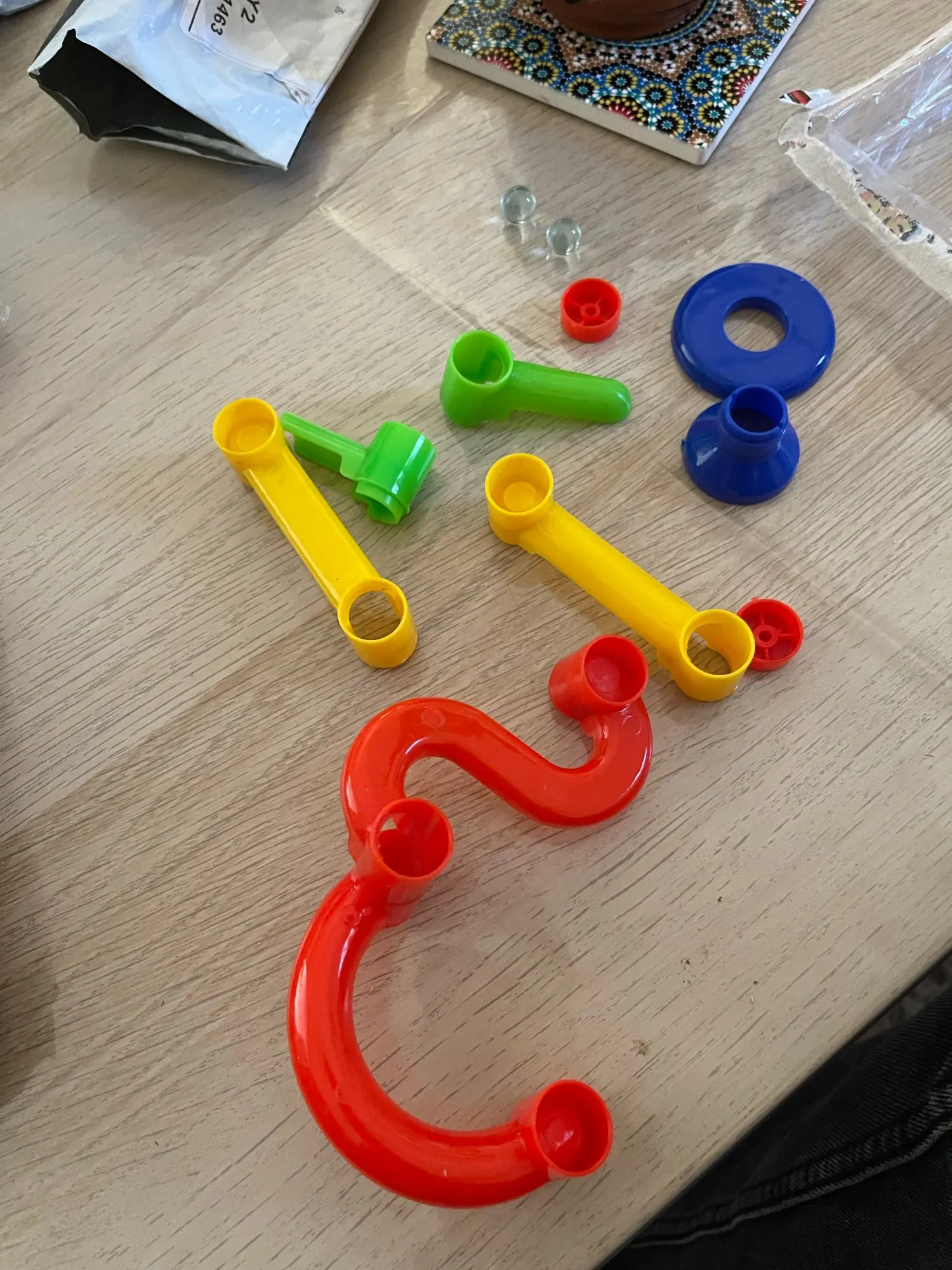В описании не дан размер. Игрушка крошечная. К сожалению, достались прозрачные шарики, как катятся совсем не видно на тёмных треках.