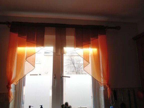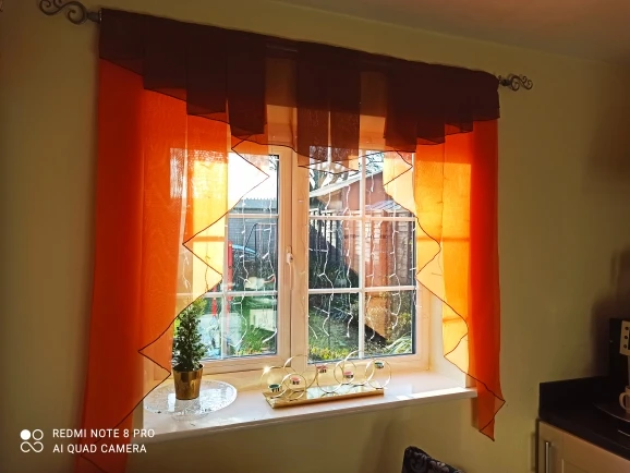 Посылку получила. Но, немного расстроилась. На фото у шторы оранжевого цвета больше складок и они сходятся на середине. Мои же шторы получились какие-то куцые. За это сняла одну звёздочку. Ну, в целом интерьер обновился, хоть это радует. Продавец положил маленькую салфетку под кружку, будет мне как утешение) Продавцу, конечно, спасибо, но хотелось бы всё как на картинке.