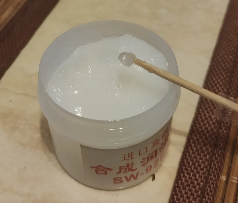 По консистенции как вазелин. я думал, будет белая вязкая. доставка 45 дней. покупал для смазки клавиш на клавиатуре.