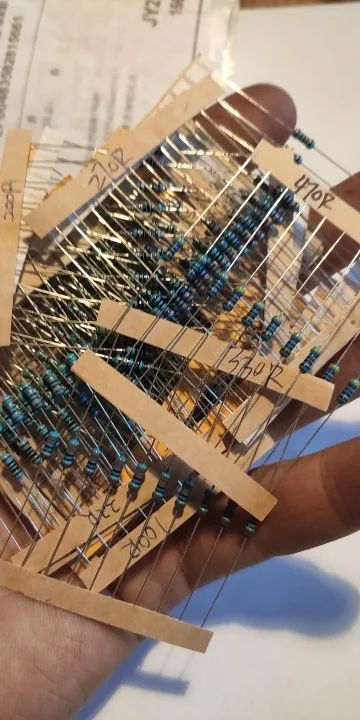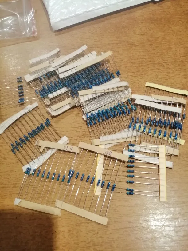 Некоторые обозначения на бумажке резисторов неразборчивы,приходится мерять мультиметром. Есть разброс по номиналу как в + так и в -.